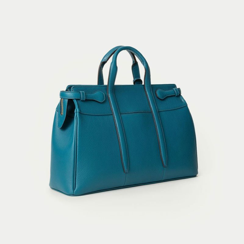 ディテールのクラシックさと、ユーザビリティのモダンさを融合させ、ハイブリッドなデザインへと昇華させているサイドベルトブリーフケース。上部の差し込み金具に、肉厚なベルトが通っているという古典的な装飾を、イミテーションにすることで現代的にアップデートさせ、ファスナーを開くと背胴のマグネットが自然に外れてベルトが緩み、マチが大きく開くという機能的な設計へと導いています。