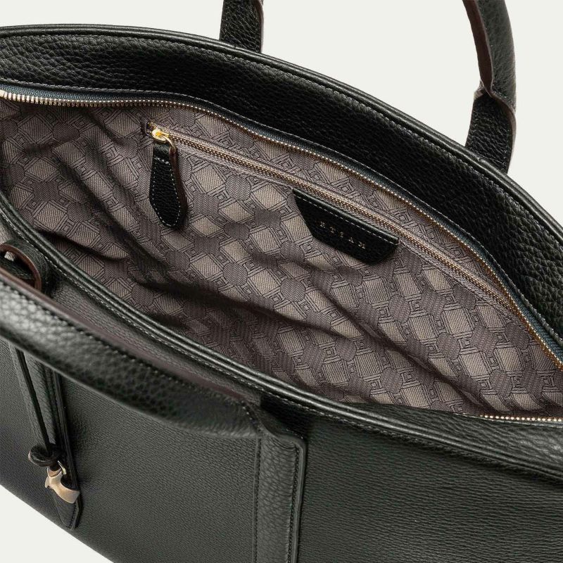 カジュアルなビジネススタイルにも似合うように、凛とした佇まいを醸し出しながらも、フォーマル過ぎない柔らかな曲線を併せ持たせた、スタイリッシュなブリーフケース。上辺を広く下辺を狭く設計することで、出し入れのしやすさとコンパクトに見えるスマートさを両立させ、滑らかでスムーズに携えて行けます。また、上面のファスナーを一段下げ、目立たさずに上品さを漂わせるとともに、小さいカーブを描く両端のデザインで、「シュリンクレザー」のボディとの隙間から中身が見えない細かな配慮も追求。ファスナーの先端も内装に収める構造にして、シルエットの美しさを損なわないように配慮しています。