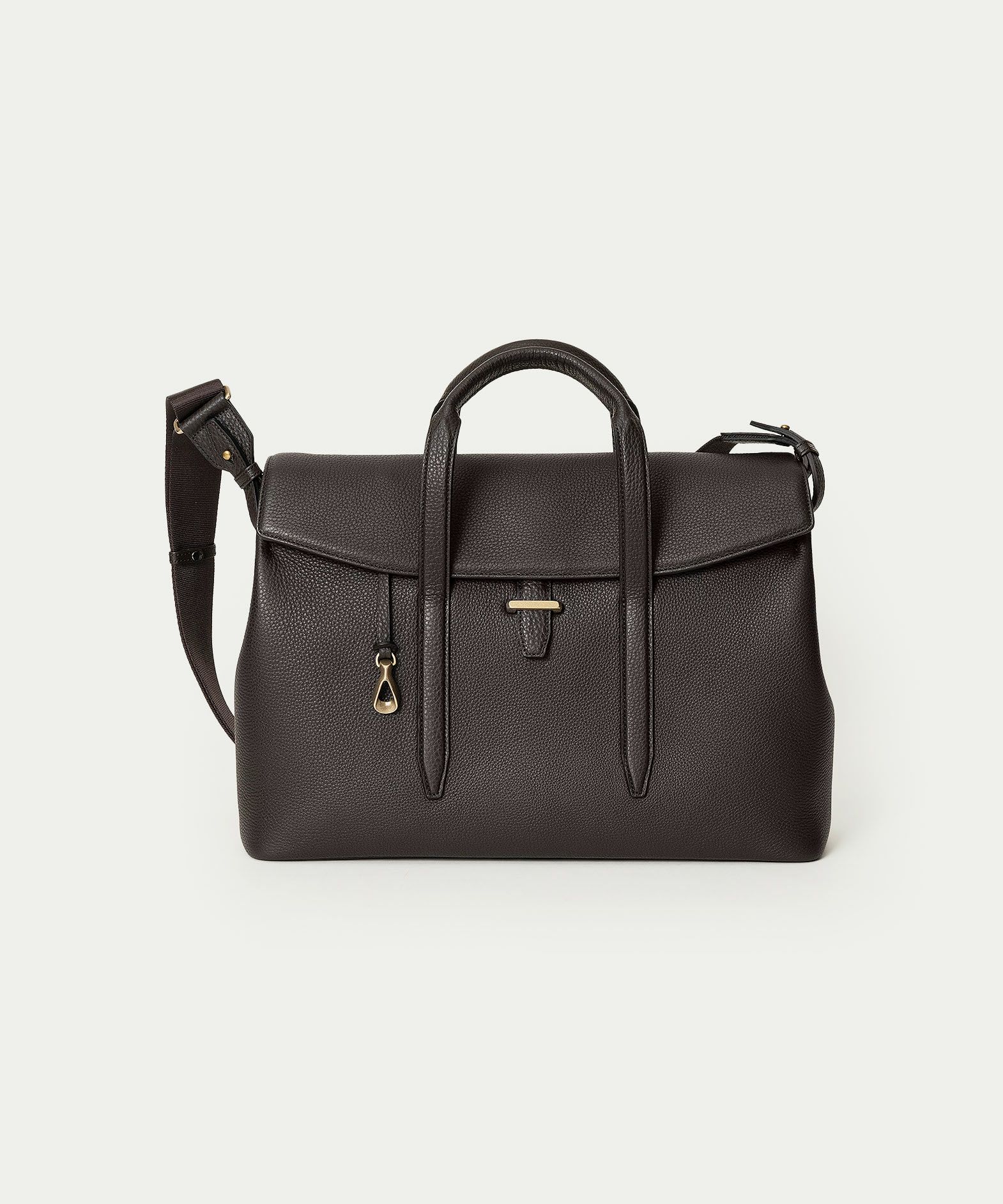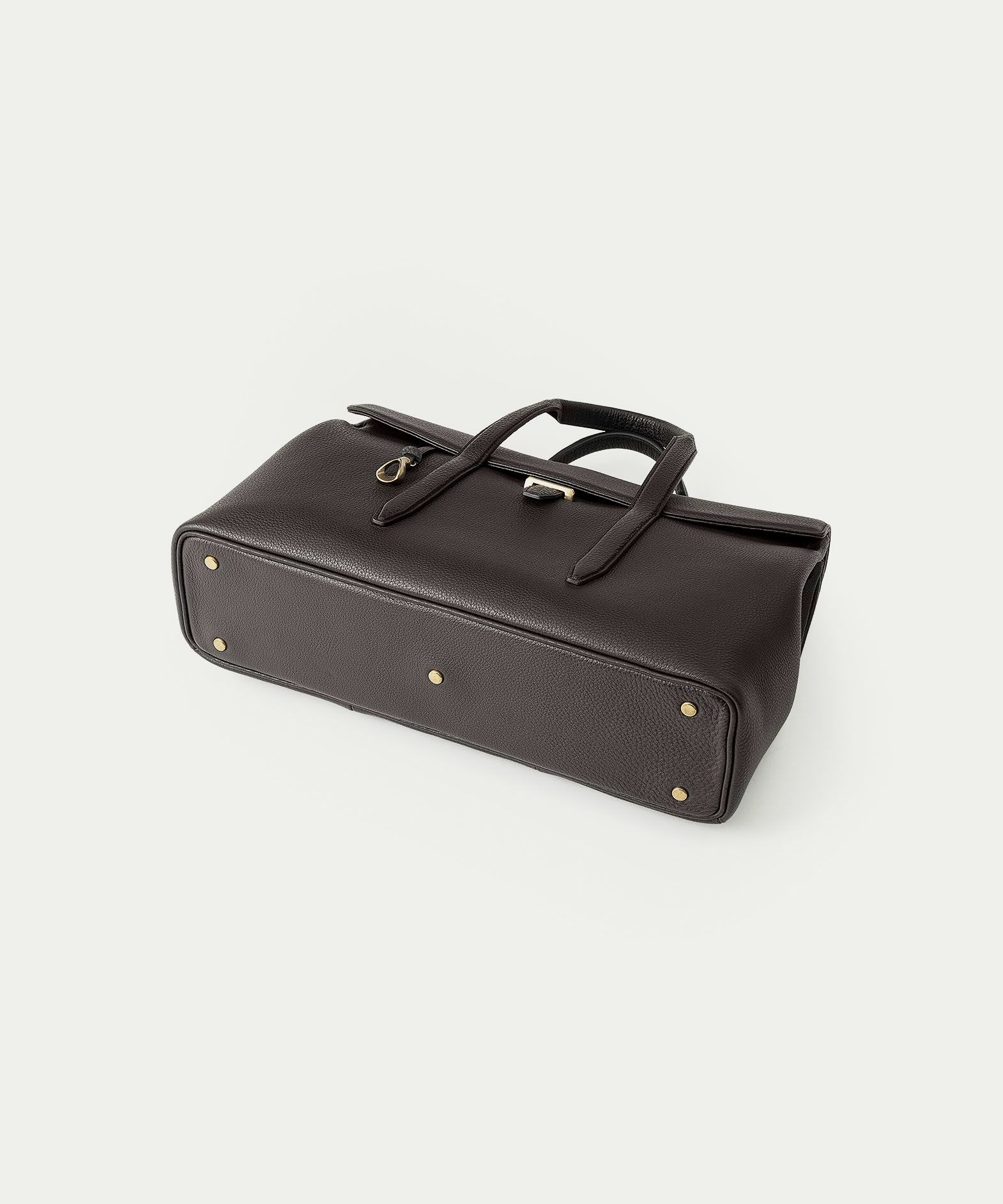 ふっくらとした柔らかなボディや、「シュリンクレザー」を多用した贅沢なデザインが、気持ちを豊かにしてくれて至福を味わえる、フラップブリーフケース。前面と両サイドの側面にかけて、ハギ(継ぎ目)をなくす一枚仕立てにすることで、やさしく丸みを帯びたフォルムへと導いています。