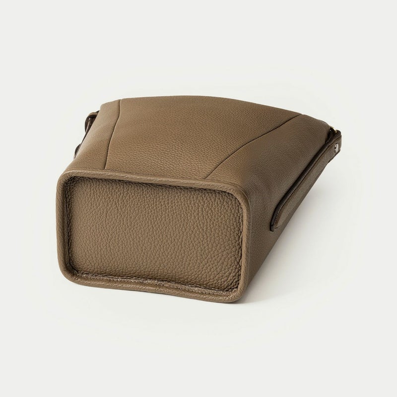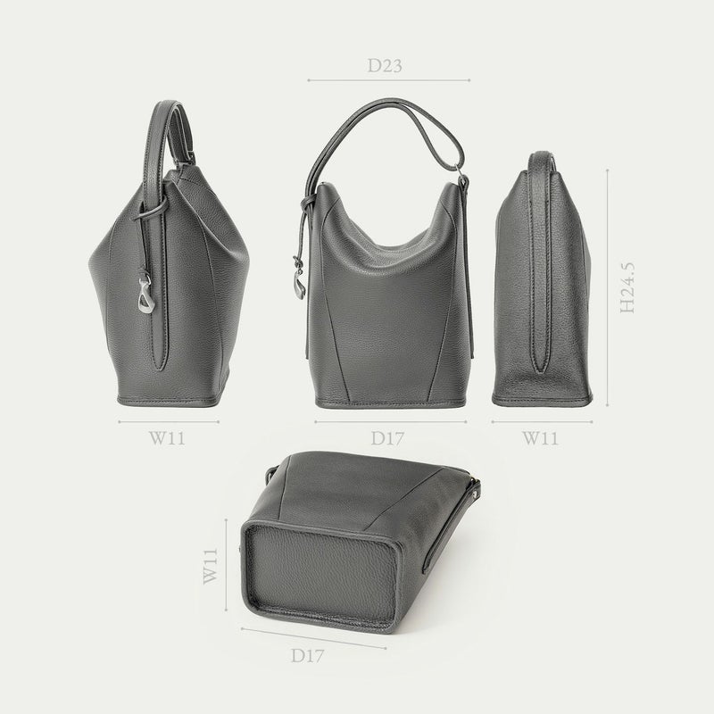 スッと軽やかにハンドルを手首に引っ掛けて、自分を追い掛けて付いてくるかのように、軽快に持ち歩くことができるハンド&バングル。スマートフォンで買い物を支払うなど、携帯すべき荷物が少なくなったとはいえ、単純にサイズをコンパクトにするのではなく、いかにスマートな佇まいのまま連れて行けるかを目指してデザインしています。さらに、ビジネススタイルとカジュアルスタイルが曖昧になり、ドレスコードも変化している現代に寄り添うシルエットを追求。また、二重のハンドルを1本だけ伸ばして上部を畳むことで、異なるフォルムを楽しむこともできます。