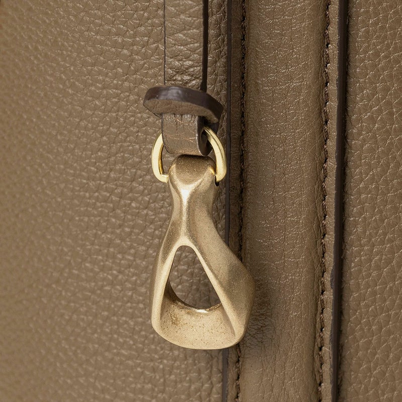 日本の職人が、伝統的な技術を用いて、すべて手作業で製作している、ブランドオリジナルの「真鍮金具/エターナルチャーム」。銅と亜鉛の合金である真鍮は、銅が含まれていることで滑りが良く耐久性にも優れ、革とともに経年変化を楽しむことができます。日本では神仏具を中心に使用され、西洋では家具・馬具・高級客船の装飾品などに使用されるなど、古くから世界中で愛されているマテリアル。真鍮の製作にあたっては、原型師が、まず彫刻刀で削り出して木の原型を作り、砂を用いて鋳型にした後、1,100℃の真鍮を流し込みます。冷却後、固まった真鍮鋳物を砂型から外して表面の下処理を行い、最後に磨き加工・仕上げを施すように、とても手間暇の掛かる工程を経て完成。 今では、非常に少なくなった砂型によって作られる製造方法を用いることで、独特の表情を醸す肌に仕上がり、金属でありながらも柔らかさを感じられる、ずっと触れていたくなるような質感になっています。