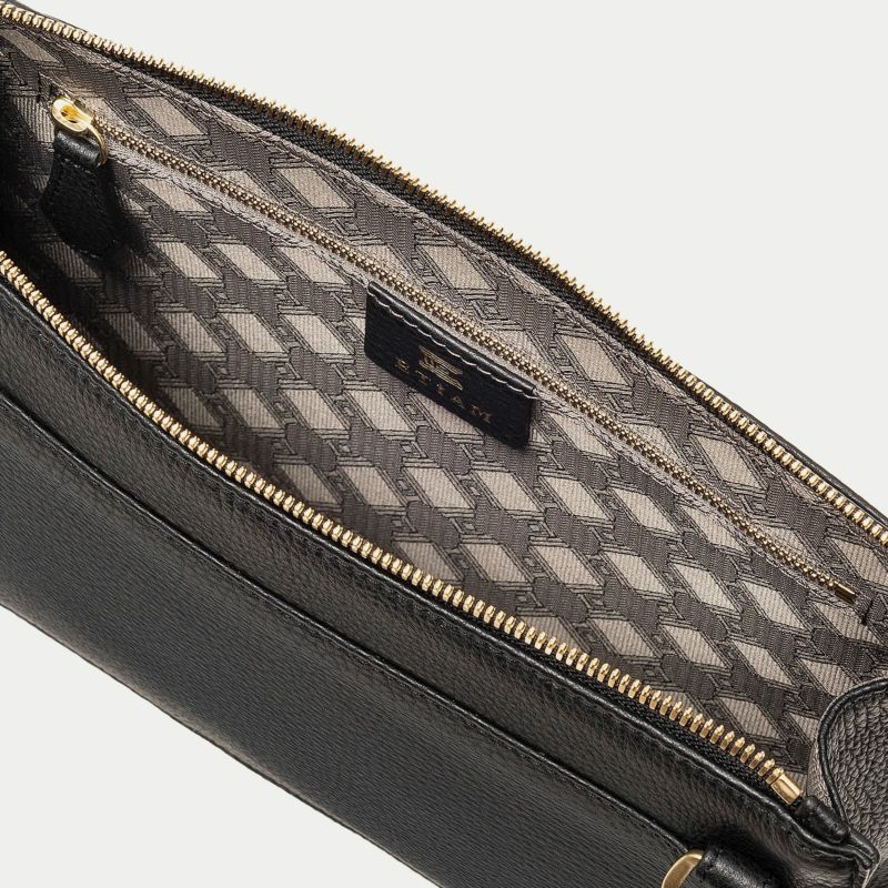また、交通系のICカードなどを収納して便利に使える、前面にレイアウトされたポケットには、力を入れて押し引きするホック式ではなく、軽い力で開閉できるマグネット式を採用。さらに、メインファスナーには、YKKエクセラダブルを贅沢に使用し、先端をマチと付着させるホックに同じ革を被せるなど目立たなくさせるとともに、ナイロンテープを狭めの25mm幅にすることで、ショルダーの際にもソフトな掛け心地になるように仕立てています。