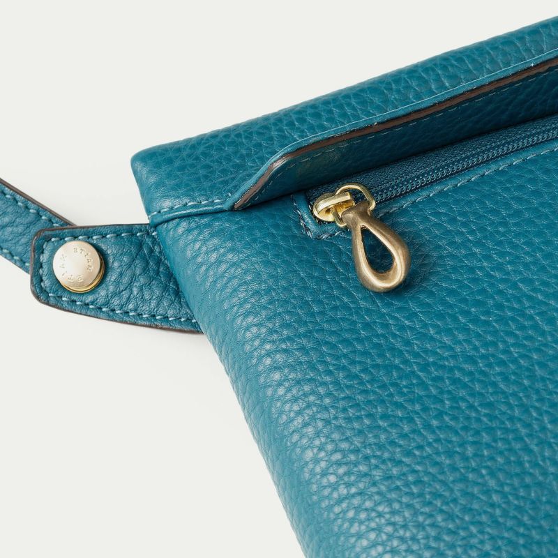 前面に設けたファスナー式ポケットは、しっかりとスマートフォンを入れられる容量を確保するとともに、フラップのコバをシャープな焦げ茶色にすることで、丸みを帯びたボディのフォルムを際立たせる、シャープな直線の美しいバランスを実現。さらに、ショルダーベルトを細めにすることで、大げさ過ぎずにファッションに寄り添うながら、ボディとの接続にはカフスボタンを想わせる真鍮製のオリジナル金具を用いて、デザインのアクセントとしても魅力的に仕立てています。