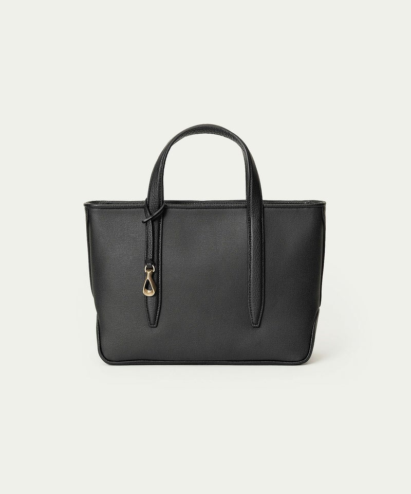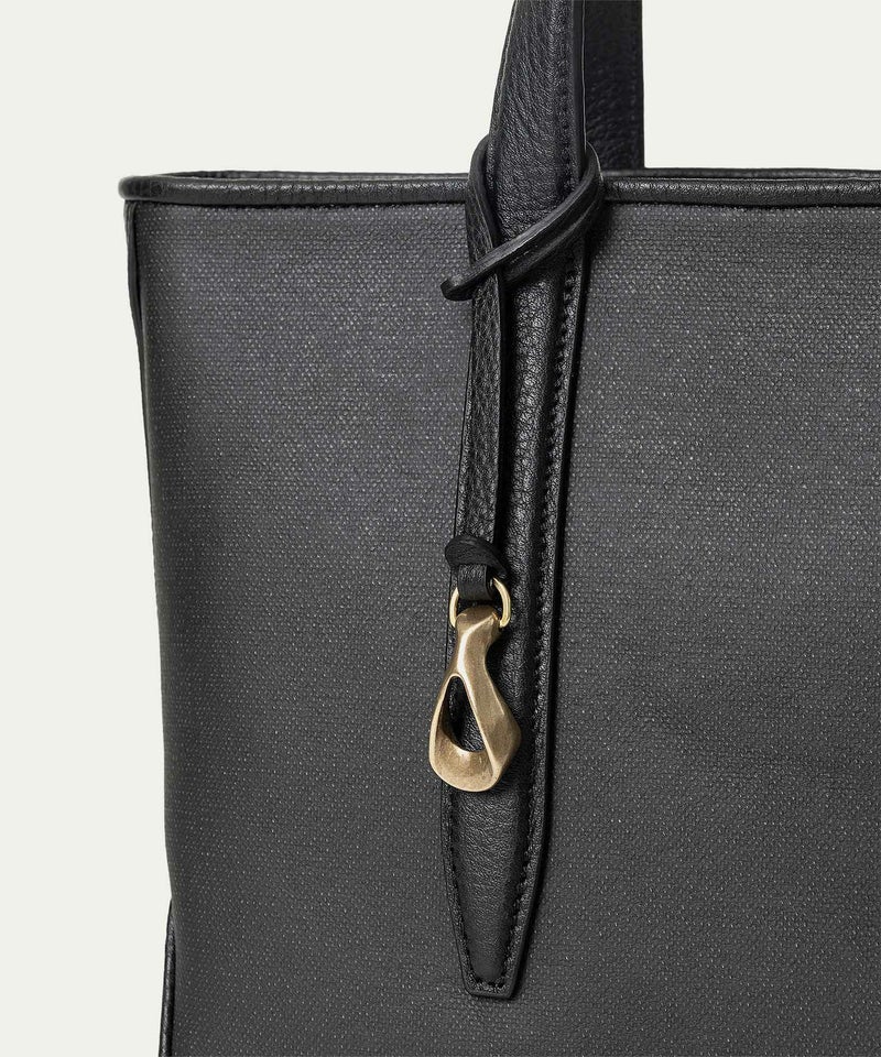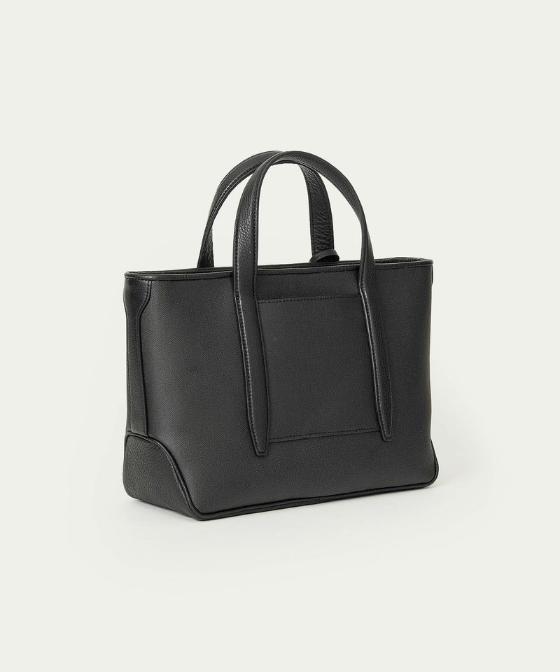 メイン素材の「キャンバス生地」表面に、墨黒のポリウレタン加工を施すことで、高級感あふれるレザーや織物のような質感へ。独特の風合いを醸し出すとともに、一年を通してコーディネートしやすく、生地目を残しながら汚れが目立ちにくいのも特長。その裏面にはスポンジ加工を施し、シワにならない弾力感のある柔らかさと、張りのある美しいシルエットも実現しています。