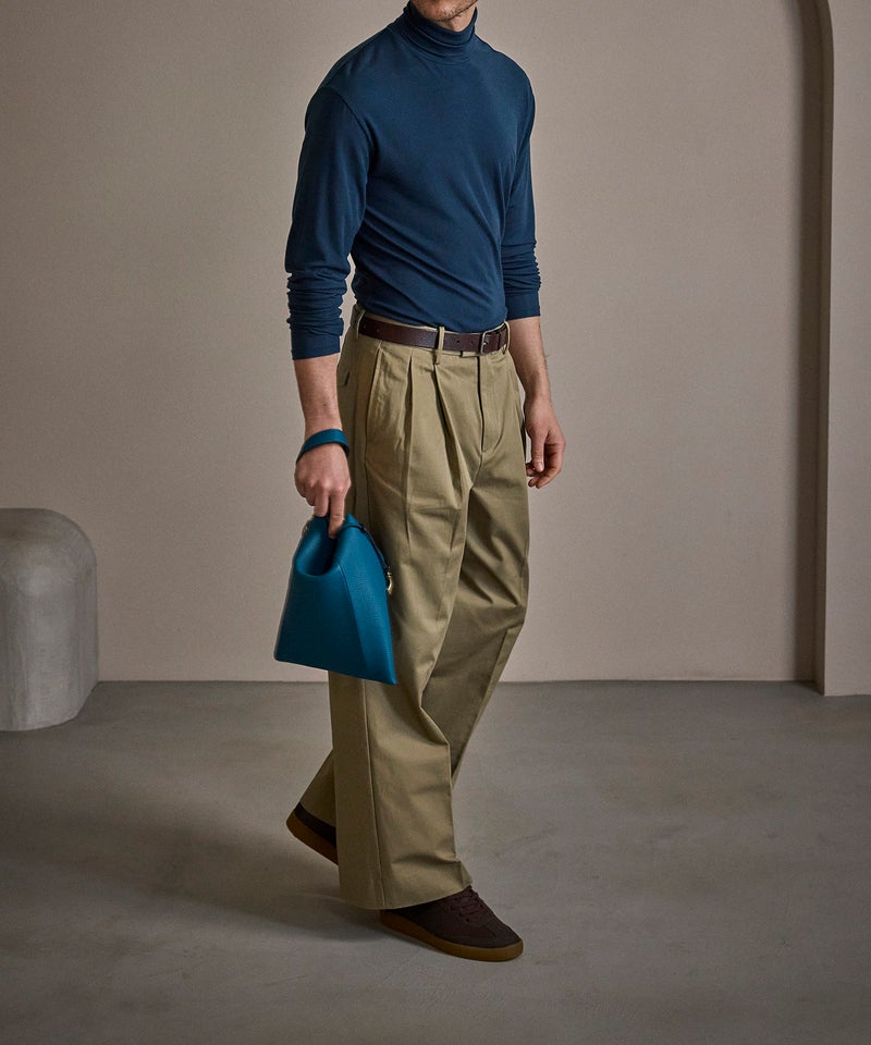 背面の開閉には、YKK最高峰のエクセラWファスナーを採用し、スマートフォンやミニ財布などをしっかり収納・携帯することが可能。内装にはファスナーポケットを備えているので、鍵・パスケース・小物などを整理して入れておけます。また、下部を内側に折り畳むことで平たくコンパクトにでき、かさばらずにバッグやスーツケースに収納することも。普段使いだけでなく、旅先や出張先などでもスマートに活躍してくれます。
