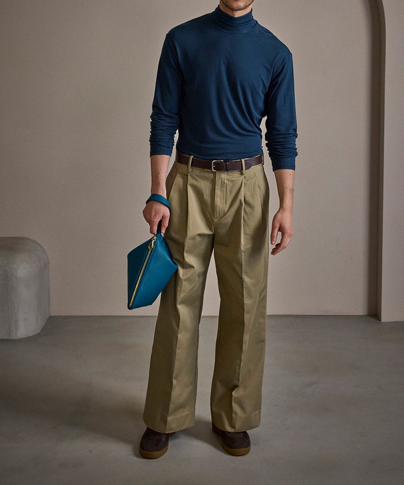 背面の開閉には、YKK最高峰のエクセラWファスナーを採用し、スマートフォンやミニ財布などをしっかり収納・携帯することが可能。内装にはファスナーポケットを備えているので、鍵・パスケース・小物などを整理して入れておけます。また、下部を内側に折り畳むことで平たくコンパクトにでき、かさばらずにバッグやスーツケースに収納することも。普段使いだけでなく、旅先や出張先などでもスマートに活躍してくれます。