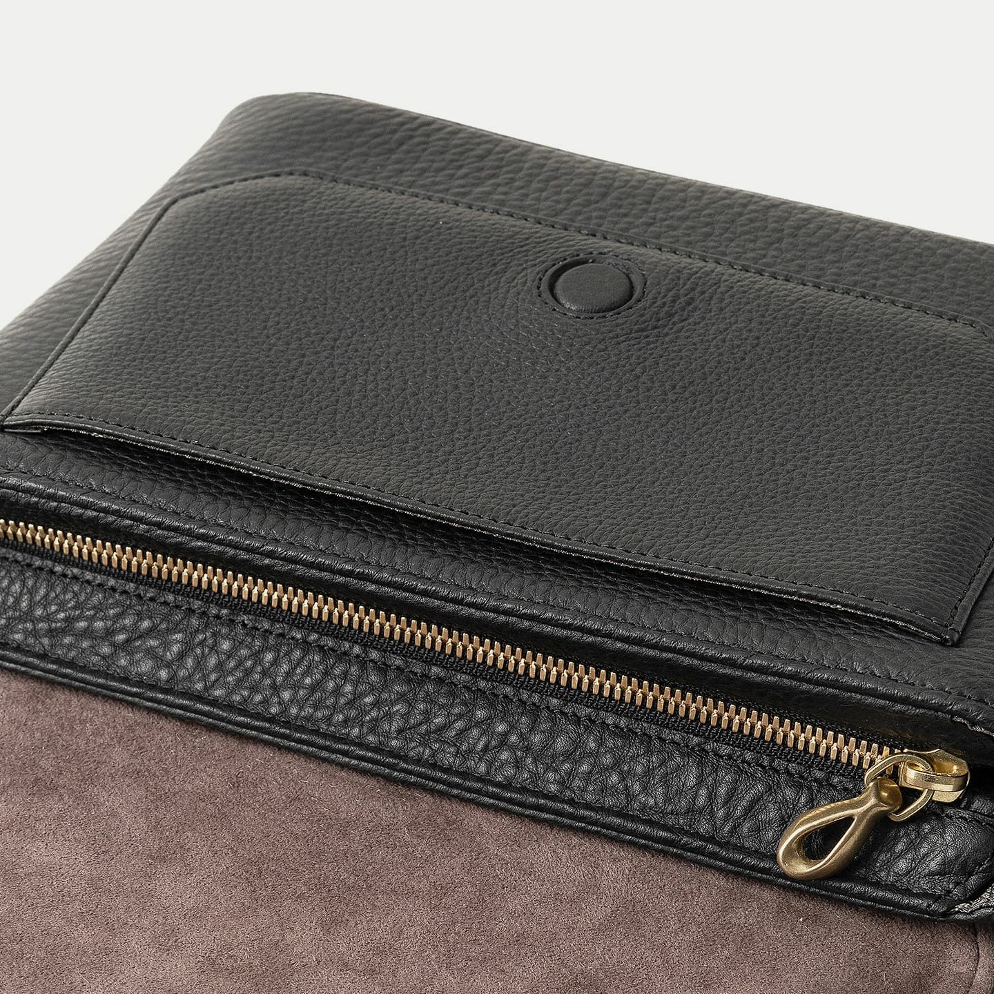 また、洗練されたデザインのアクセントにもなっているフラップは、マグネット式で簡単に開け閉めができるメリットを備えながらも、天ファスナーを設けることで開けた際に荷物の落下を防止する配慮も。さらに、装着時のコーディネートにおいて重要なファクターになるショルダーベルトは、シルクのように上品で落ち着いた中空糸ナイロンテープを採用することで、エレガントなコートやジャケットにも合わせられるなど、軽量な機能性とともに、その見た目にもこだわっています。