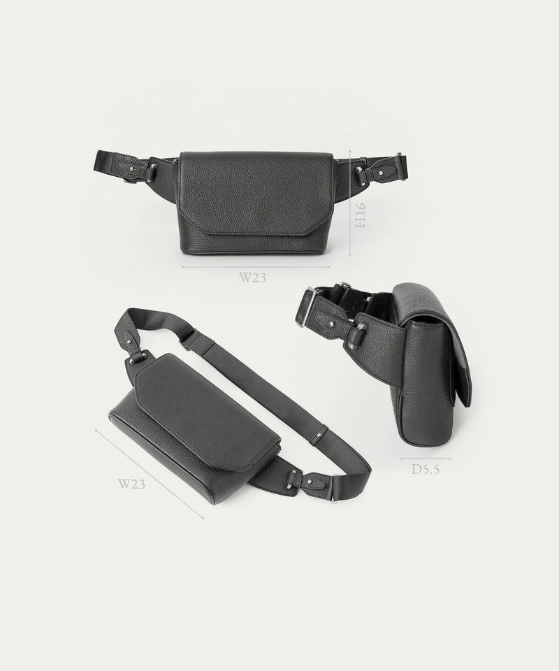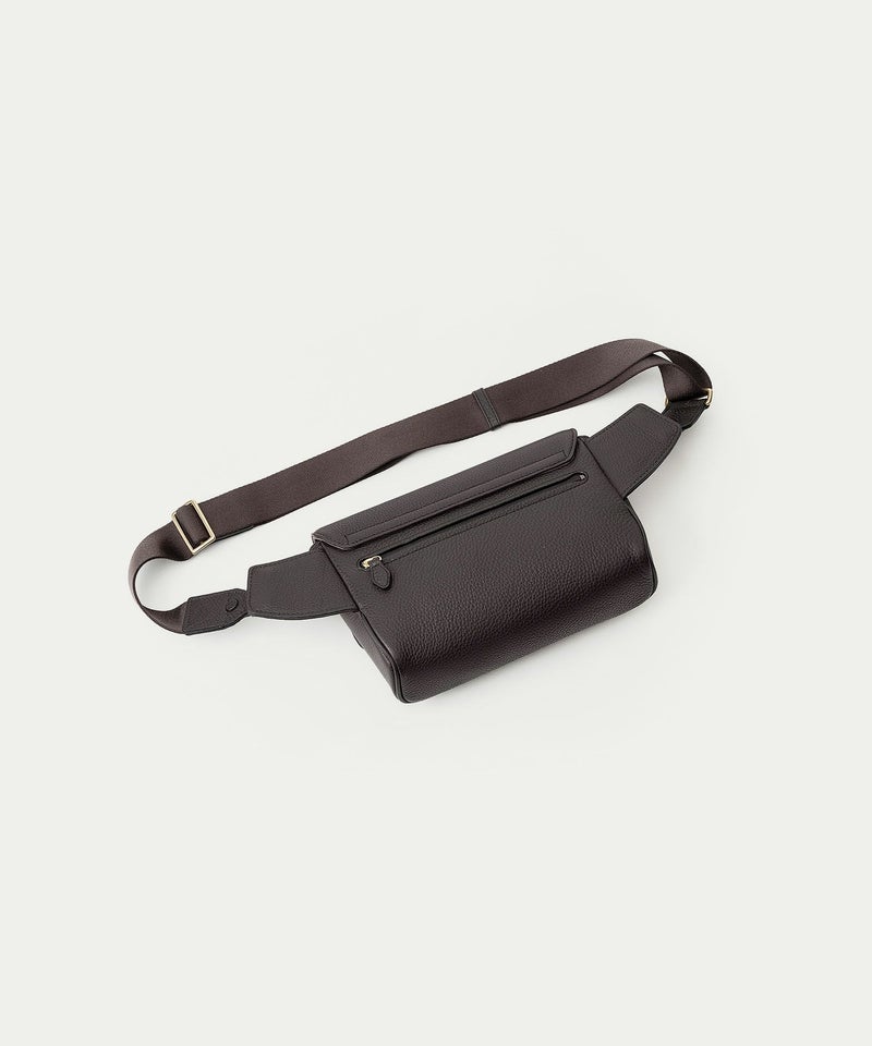 カジュアルダウンしたコーディネートにも合わせやすく、気軽に身につけて自由に動いたり歩いたりなど、解放感あふれて気分も上がるボディバッグ。前面とマチの間、背面と底の間の繋ぎ目をなくすことで、すっきりとした一枚仕立ての印象と、ふっくらとした魅力的なシルエットへと導くとともに、装着時の体あたりも柔らかくなる実用性・機能性も兼ね備えています。