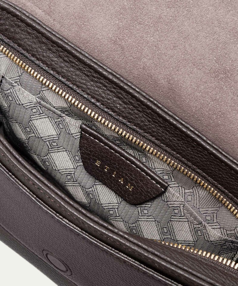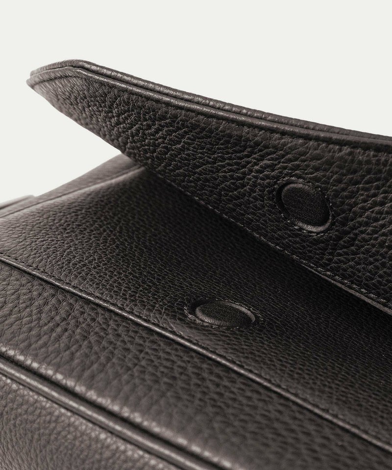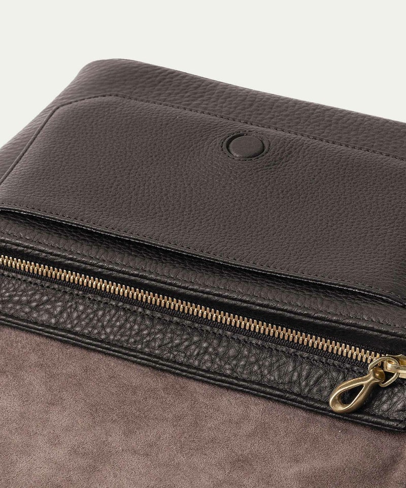 また、洗練されたデザインのアクセントにもなっているフラップは、マグネット式で簡単に開け閉めができるメリットを備えながらも、天ファスナーを設けることで開けた際に荷物の落下を防止する配慮も。さらに、装着時のコーディネートにおいて重要なファクターになるショルダーベルトは、シルクのように上品で落ち着いた中空糸ナイロンテープを採用することで、エレガントなコートやジャケットにも合わせられるなど、軽量な機能性とともに、その見た目にもこだわっています。