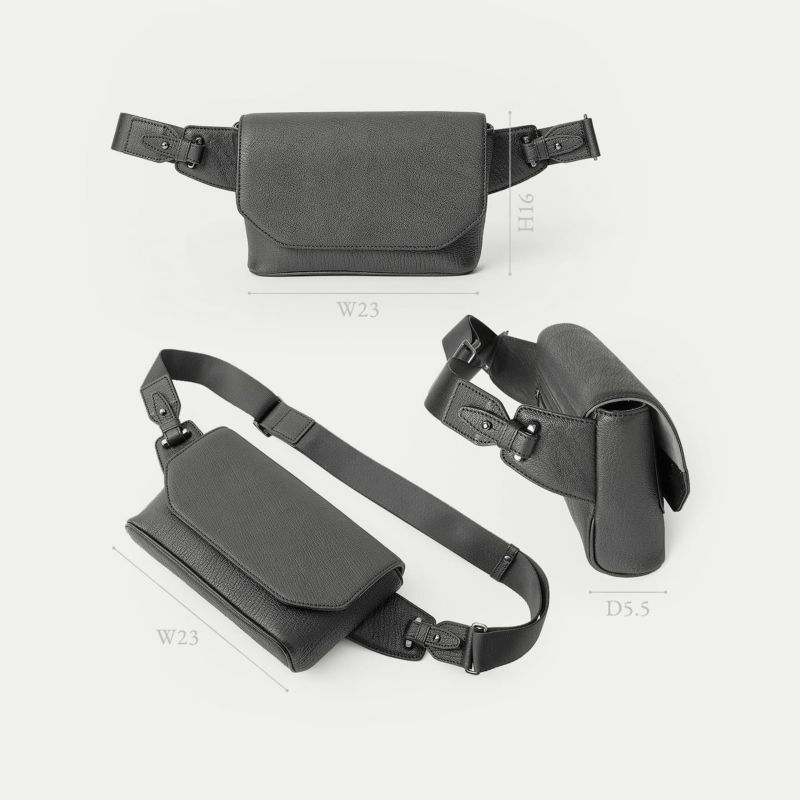 カジュアルダウンしたコーディネートにも合わせやすく、気軽に身につけて自由に動いたり歩いたりなど、解放感あふれて気分も上がるボディバッグ。前面とマチの間、背面と底の間の繋ぎ目をなくすことで、すっきりとした一枚仕立ての印象と、ふっくらとした魅力的なシルエットへと導くとともに、装着時の体あたりも柔らかくなる実用性・機能性も兼ね備えています。