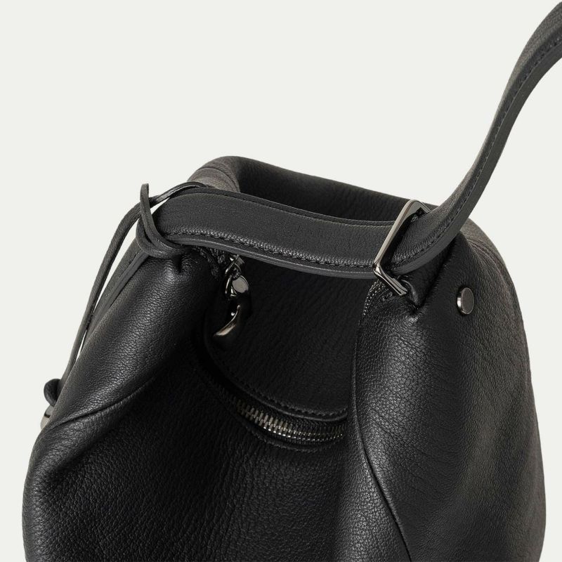 大人カジュアルな魅力を輝かせながら、巾着のようにユニークなフォルムのまま、相棒のように気軽に連れて行ける、新たな価値観を追求したハンド&スリングバッグ。横幅25mmもある肉厚のレザーベルトの長さを調整することで、指や腕に引っ掛けて連れて行くスタイルと、ワンショルダーの肩掛けで連れて行くスタイルの2WAYを楽しむことができます。