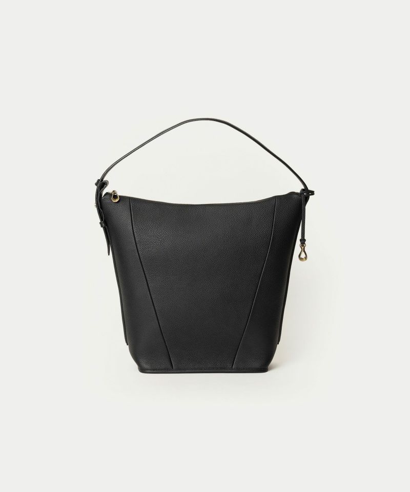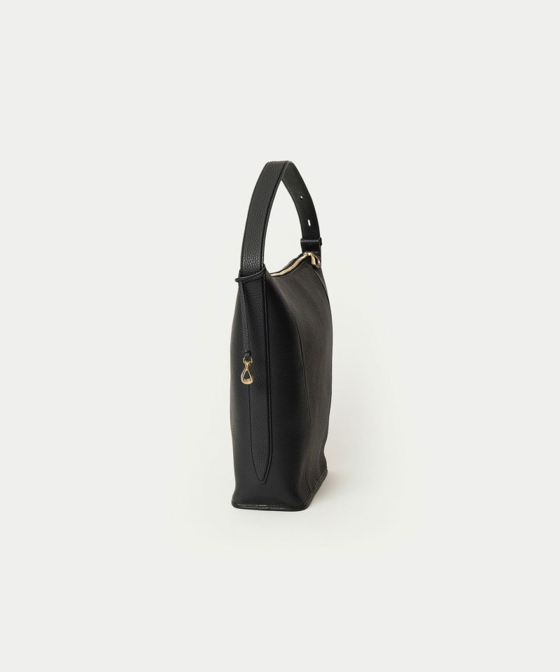 シンプルなデザインを追求することに焦点を合わせ、ハンドルを1本にした軽快さと、体に寄り添う快適さを併せ持たせた、美しいシルエットの縦型ホーボーバッグ。シボ感が魅力的な「シュリンクレザー」には、もちもちとした張りと柔らかさを兼ね備えた芯材使いをすることで、荷物の量に合わせてボディ上部がたわみ、柔軟にフォルムが対応するのも魅力です。