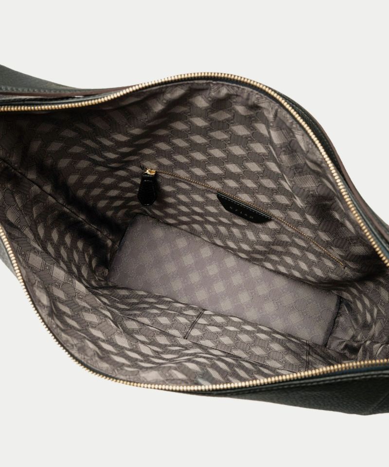 シンプルなデザインを追求することに焦点を合わせ、ハンドルを1本にした軽快さと、体に寄り添う快適さを併せ持たせた、美しいシルエットの縦型ホーボーバッグ。シボ感が魅力的な「シュリンクレザー」には、もちもちとした張りと柔らかさを兼ね備えた芯材使いをすることで、荷物の量に合わせてボディ上部がたわみ、柔軟にフォルムが対応するのも魅力です。
