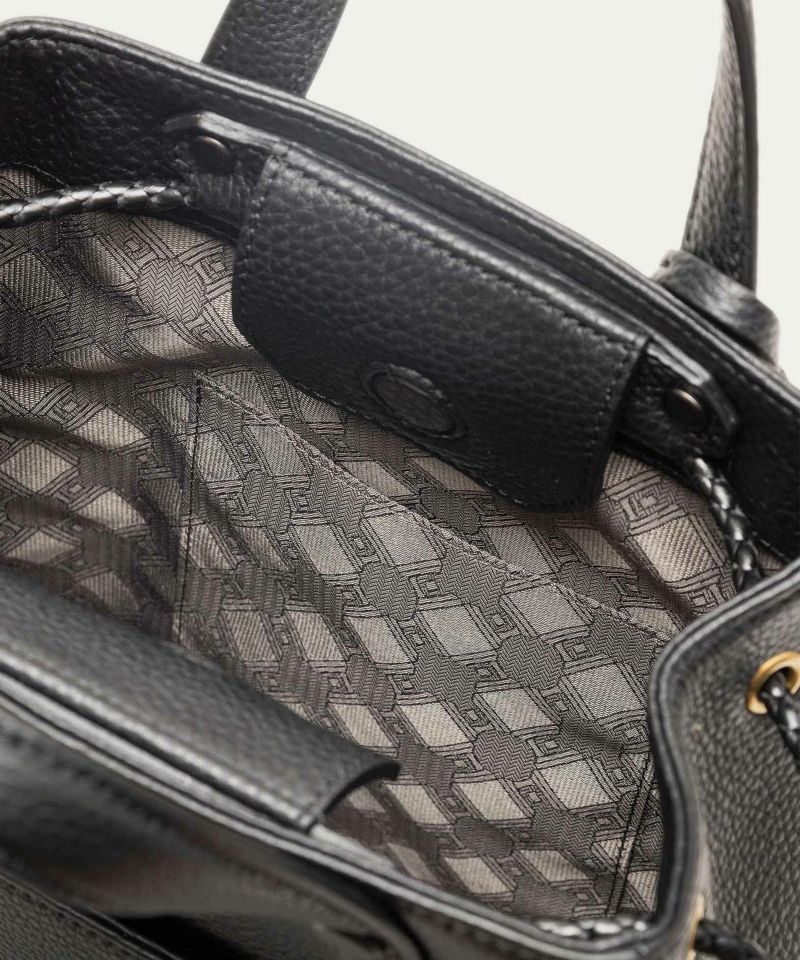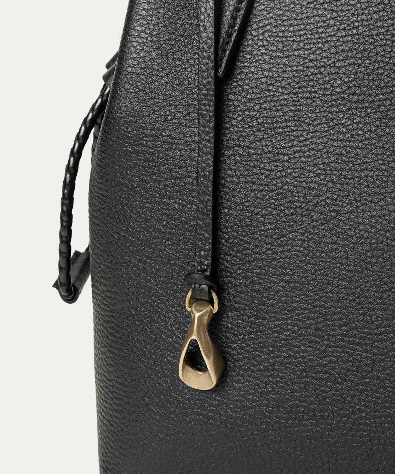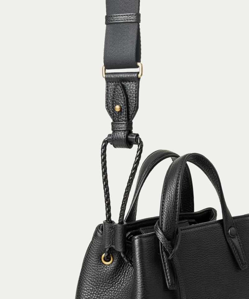 巾着型のドローストリング仕様で、絞られたマチに動きのある紐が遊び心を添えながら、前面・背面は内装に通すことで、落ち着きのある大人感を演出。強度に優れたポリエステル製で、レザーを編み込んだような上質感があり、先端のレザー部にショルダーベルトを接続できる仕様になっています。ドローストリングとの軽やかな接続が、アクティブで軽快な雰囲気を醸成。中空糸を高密度に織っているナイロンテープは、軽量でしっかりとした厚みを確保しつつ、シルクのような光沢感があるので、カジュアルになりがちな斜め掛けも上品に装えます。