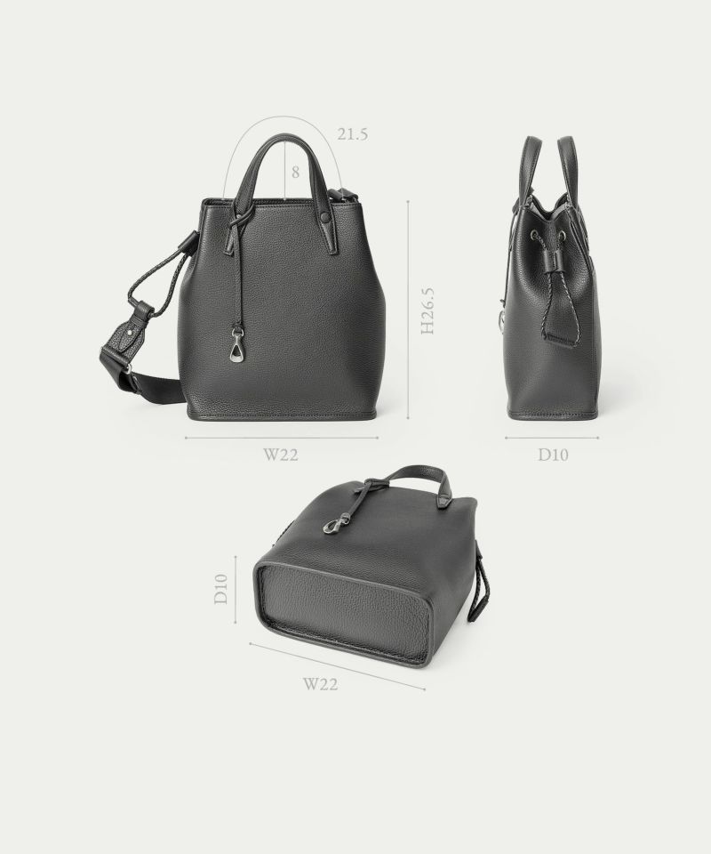シボ感が美しい「シュリンクレザー」を纏ったフォルムの変化に、柔軟な曲がり方で自然に寄り添う、ドローストリングショルダーバッグS。肉厚で丈夫なハンドルによる手持ちと、取り外し可能なショルダーベルトによる肩掛けの2WAYで、気分やスタイルに合わせて持ち歩くことができます。前面とマチを一枚革で仕立てたボディは、ハギ(繋ぎ目)のない滑らかなシルエットが魅力。また、ハンドルとの接続を、縫製ではなくリベット式にすることで、よりスッキリとした軽快な印象へと引き立てています。