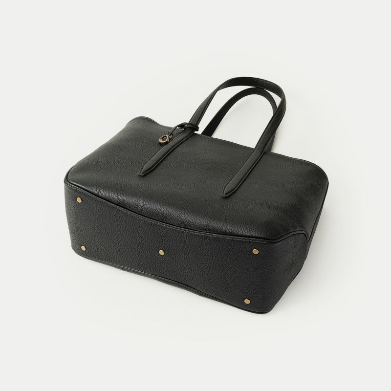 ソフトで馴染みやすい仕上がりで、ビジネスにもプライベートにも柔軟に使える、B4サイズを収納可能なファスナー開閉式のトートバッグ。会社への出勤やカフェでのリモートワークには、ノートパソコンなどを収納・携帯するために大容量が必要ですが、休日などで収納・携帯する物が少ないときには、マチを内側に折り畳んでコンパクトにすることができ、2通りのシルエットを用途に合わせて自由に楽しめるのも魅力です。