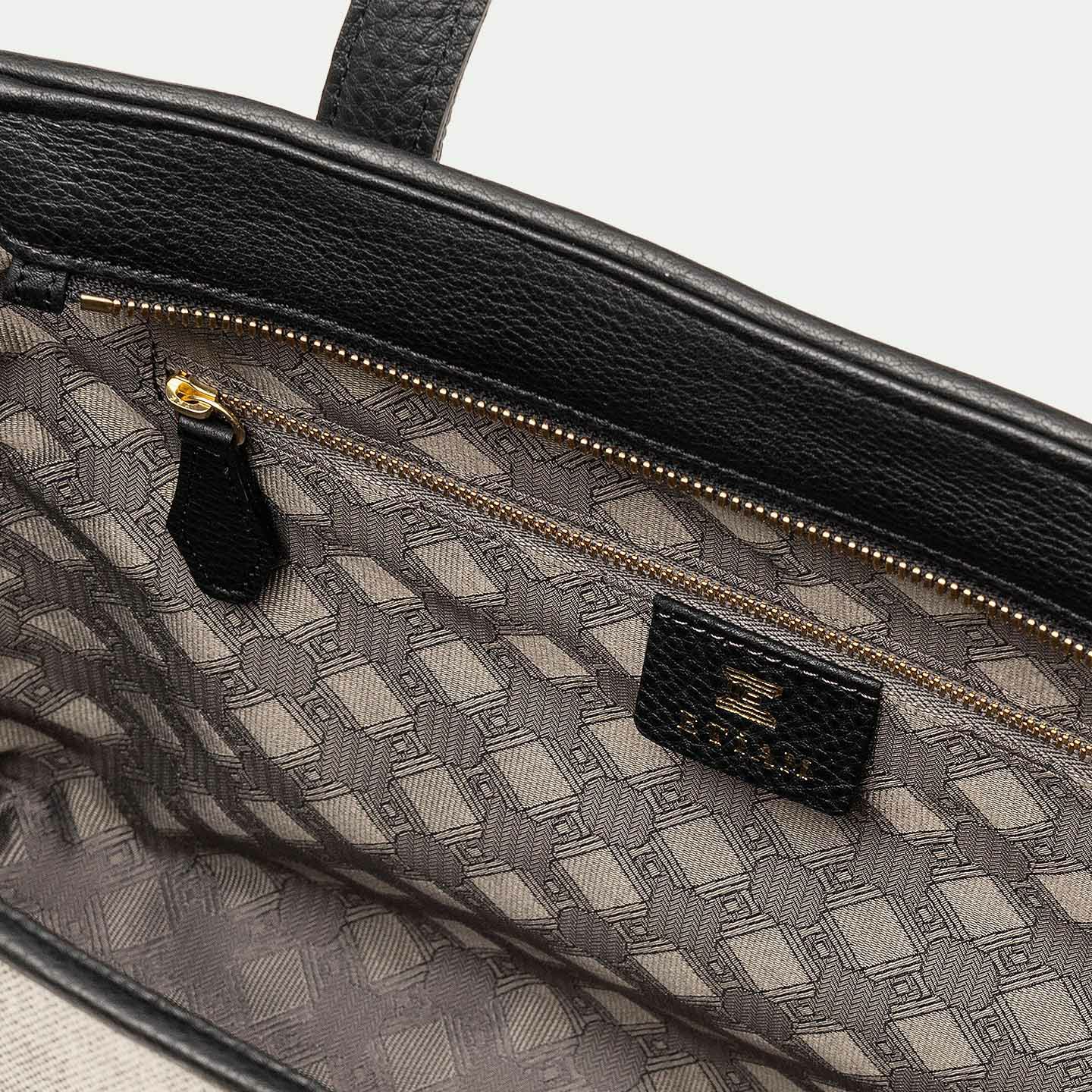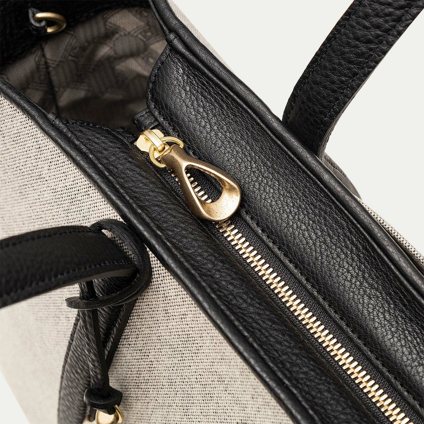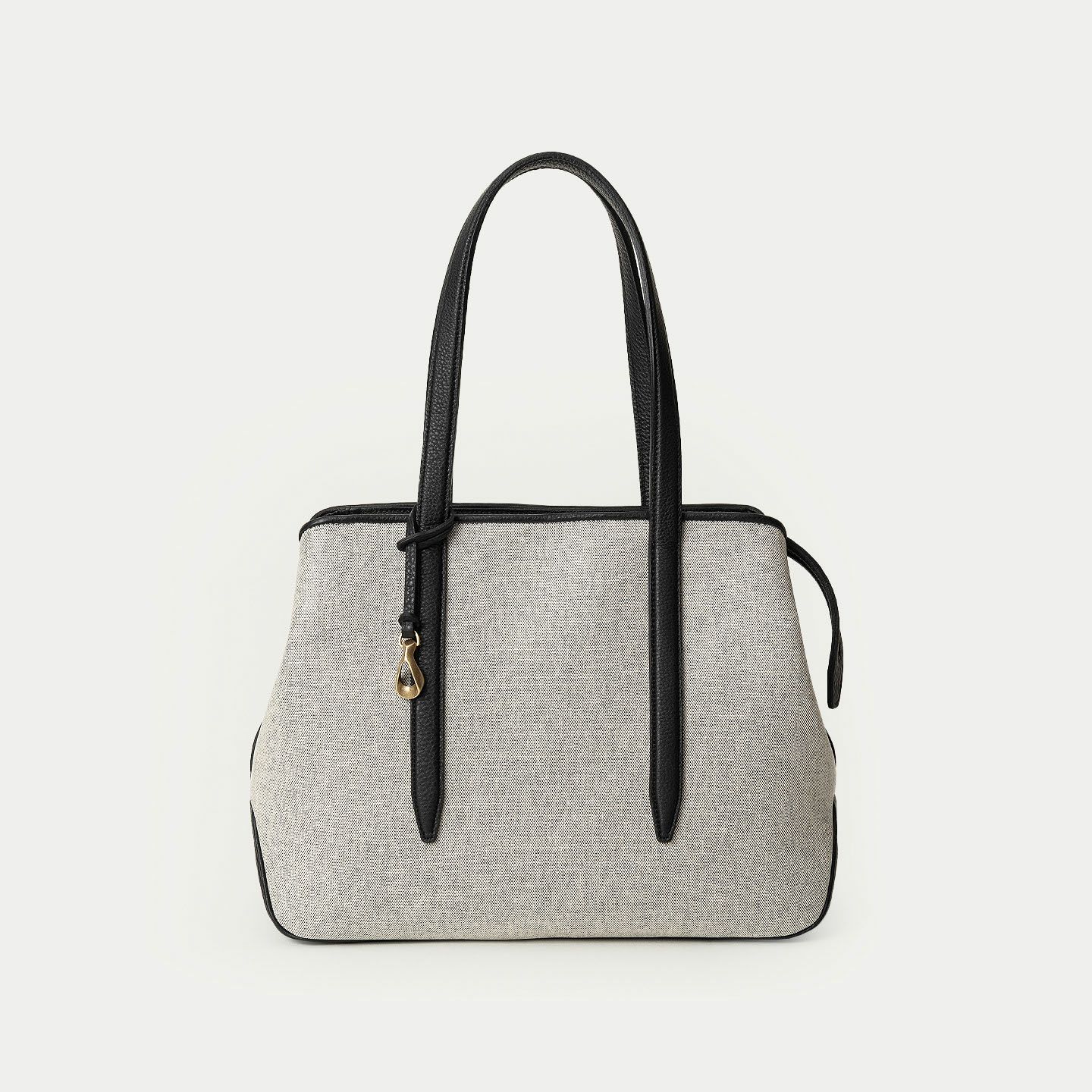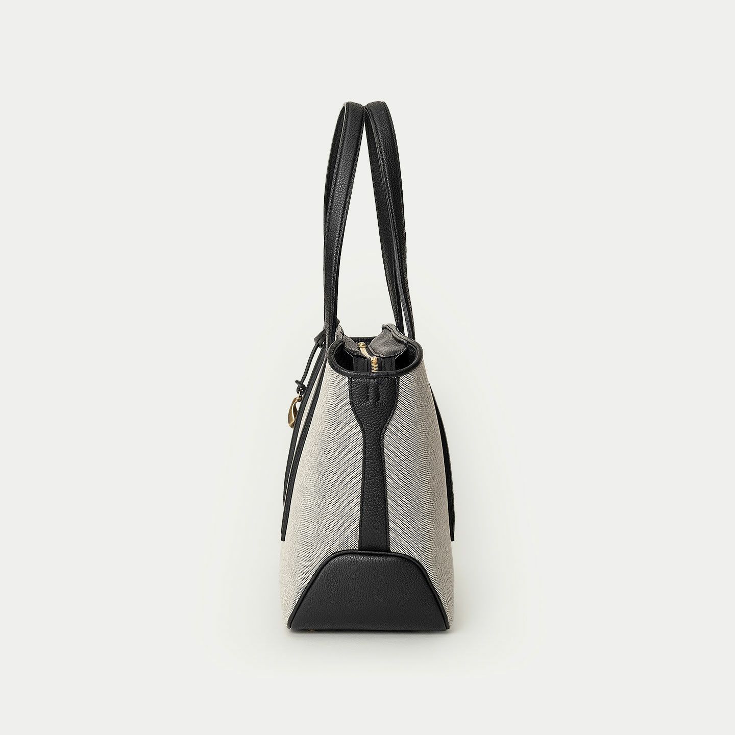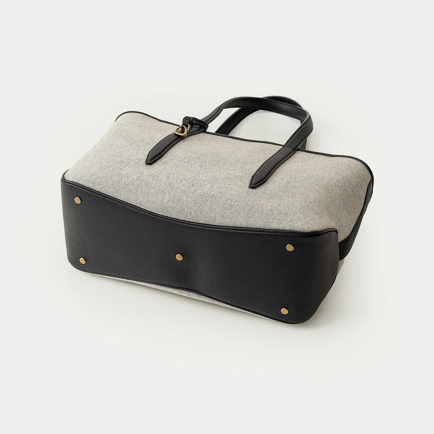 ソフトで馴染みやすい仕上がりで、プライベートにもビジネスにも柔軟に使える、A4サイズを収納可能なファスナー開閉式の「キャンバス生地」をメインにしたトートバッグ。会社への出勤やカフェでのリモートワークには、ノートパソコンなどを収納・携帯するために大容量が必要ですが、休日などで収納・携帯する物が少ないときには、マチを内側に折り畳んでコンパクトにすることができ、2通りのシルエットを用途に合わせて自由に楽しめるのも魅力です。
