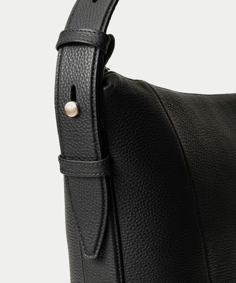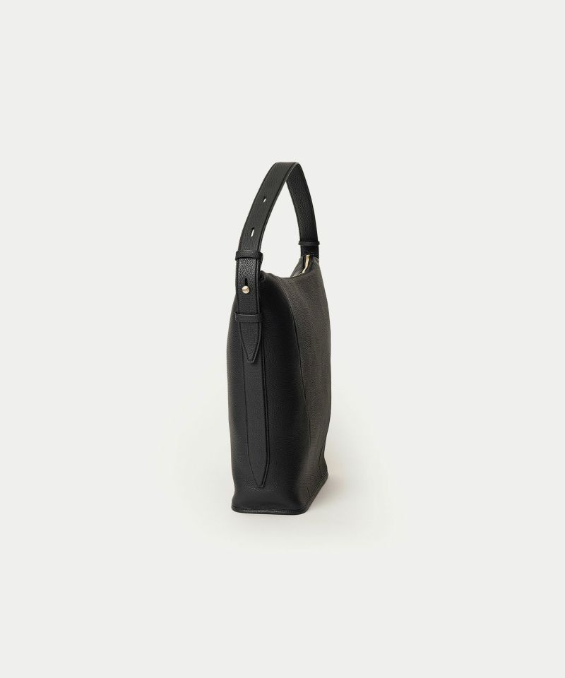 シンプルなデザインを追求することに焦点を合わせ、ハンドルを1本にした軽快さと、体に寄り添う快適さを併せ持たせた、美しいシルエットの縦型ホーボーバッグ。シボ感が魅力的な「シュリンクレザー」には、もちもちとした張りと柔らかさを兼ね備えた芯材使いをすることで、荷物の量に合わせてボディ上部がたわみ、柔軟にフォルムが対応するのも魅力です。