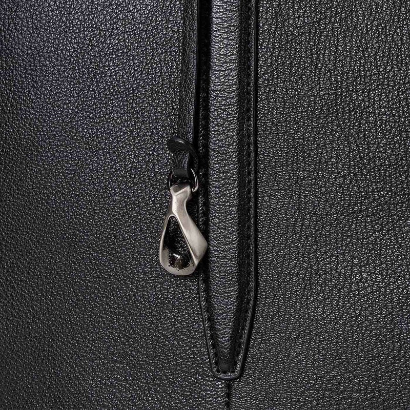 外装には、海外の有名メゾンでも愛用されている、フランス・ジュリアン社製のゴードレザー「シェーブル」を纏わせ、美しく立体的なシボにより高級感あふれるエレガントさを演出。さらに、ETiAM特注のセミマットな表情が、落ち着いた上質感を醸すとともに、キズが目立ちにくく経年変化も余りしないので、キレイな状態のまま長く使い続けられるのも魅力です。前面のチャームやYKKエクセラWファスナーの引き手には、オリジナルの真鍮金具を採用。ブラックニッケルにシルバーヘアラインを施した特別仕様で、エッジの効いた意匠をさらに引き立てています。