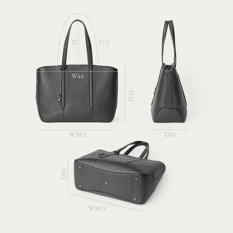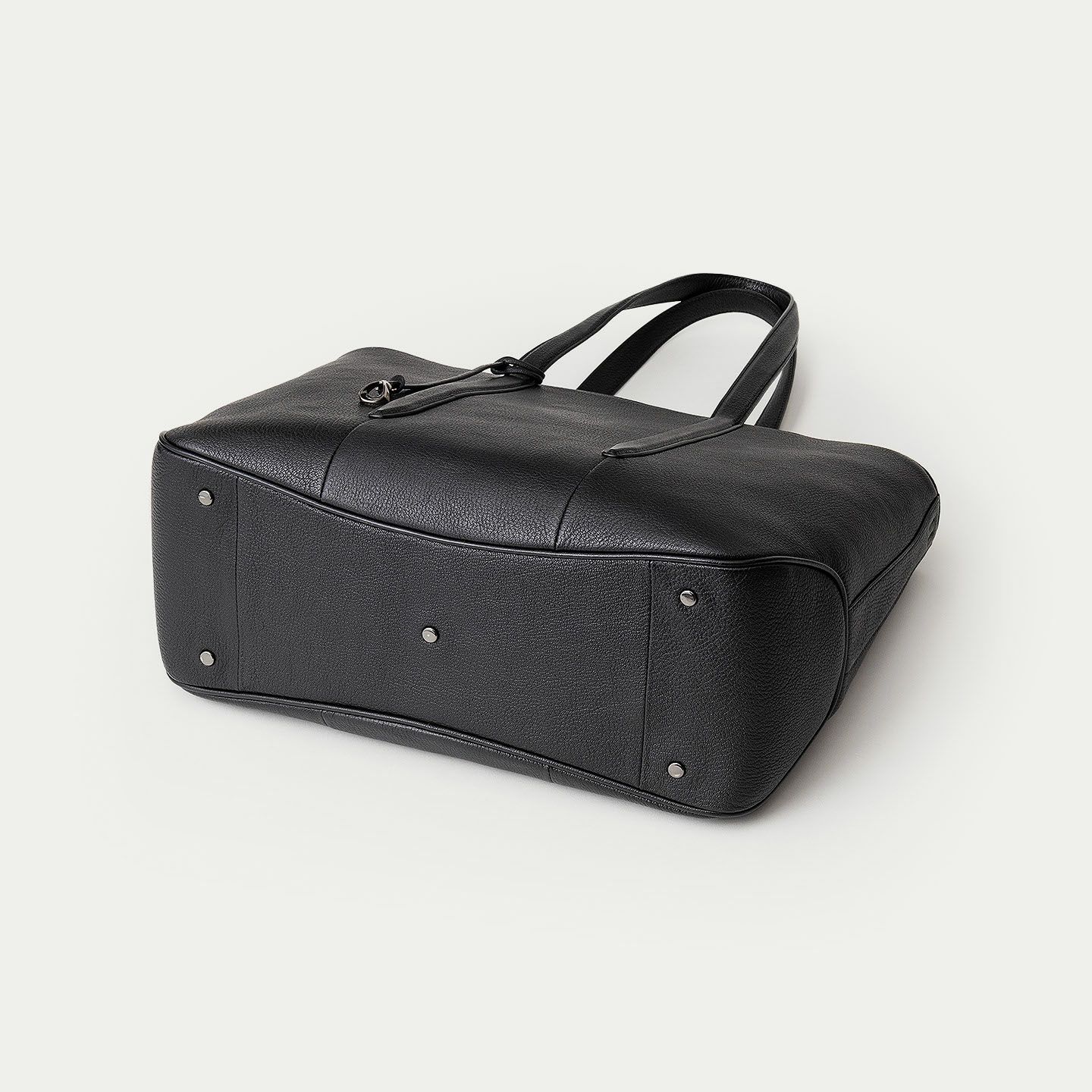 ビジネスファッションの変化にフレキシブルに対応できるデザインを追求し、会社への出勤やカフェでのリモートワークなどへも柔軟に持ち歩ける、ファスナー開閉式のトートバッグ。B4サイズや15インチのノートパソコンを収納可能で、荷物が少ないときにはマチを内側に折り畳むことでコンパクトにでき、用途や気分に合わせて2通りのシルエットを楽しめます。