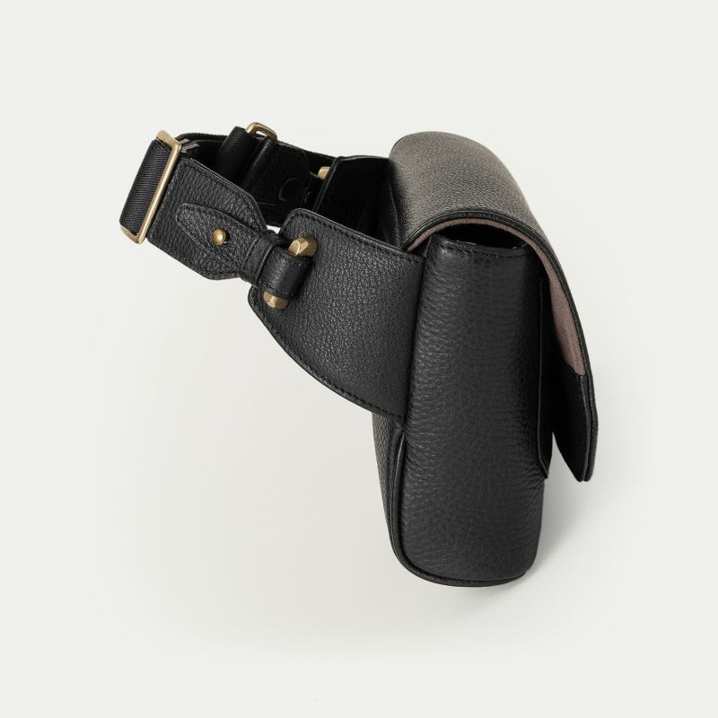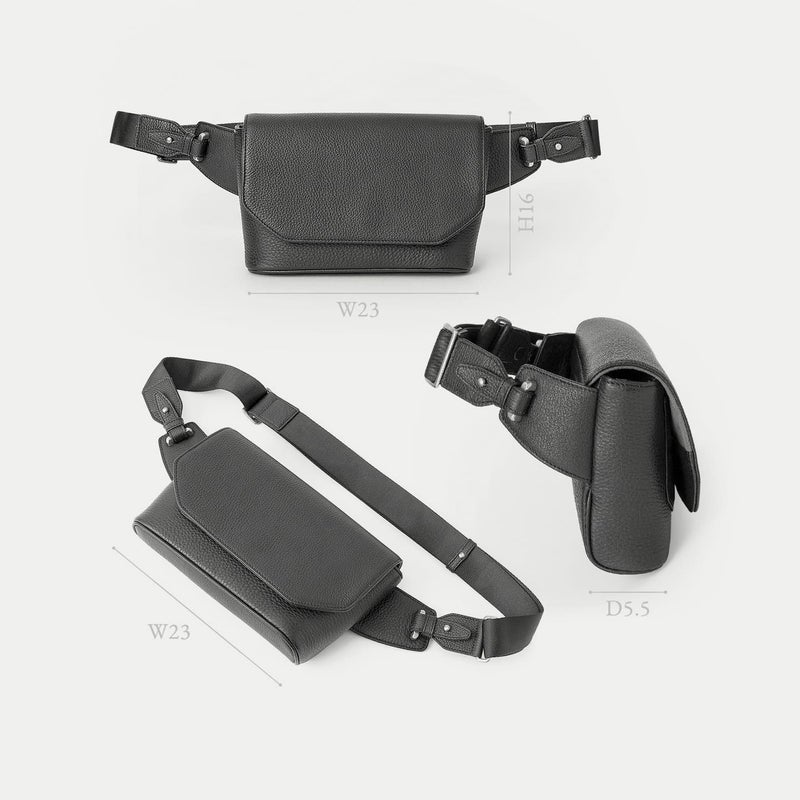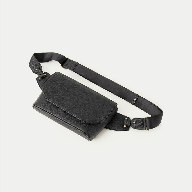 カジュアルダウンしたコーディネートにも合わせやすく、気軽に身につけて自由に動いたり歩いたりなど、解放感あふれて気分も上がるボディバッグ。前面とマチの間、背面と底の間の繋ぎ目をなくすことで、すっきりとした一枚仕立ての印象と、ふっくらとした魅力的なシルエットへと導くとともに、装着時の体あたりも柔らかくなる実用性・機能性も兼ね備えています。