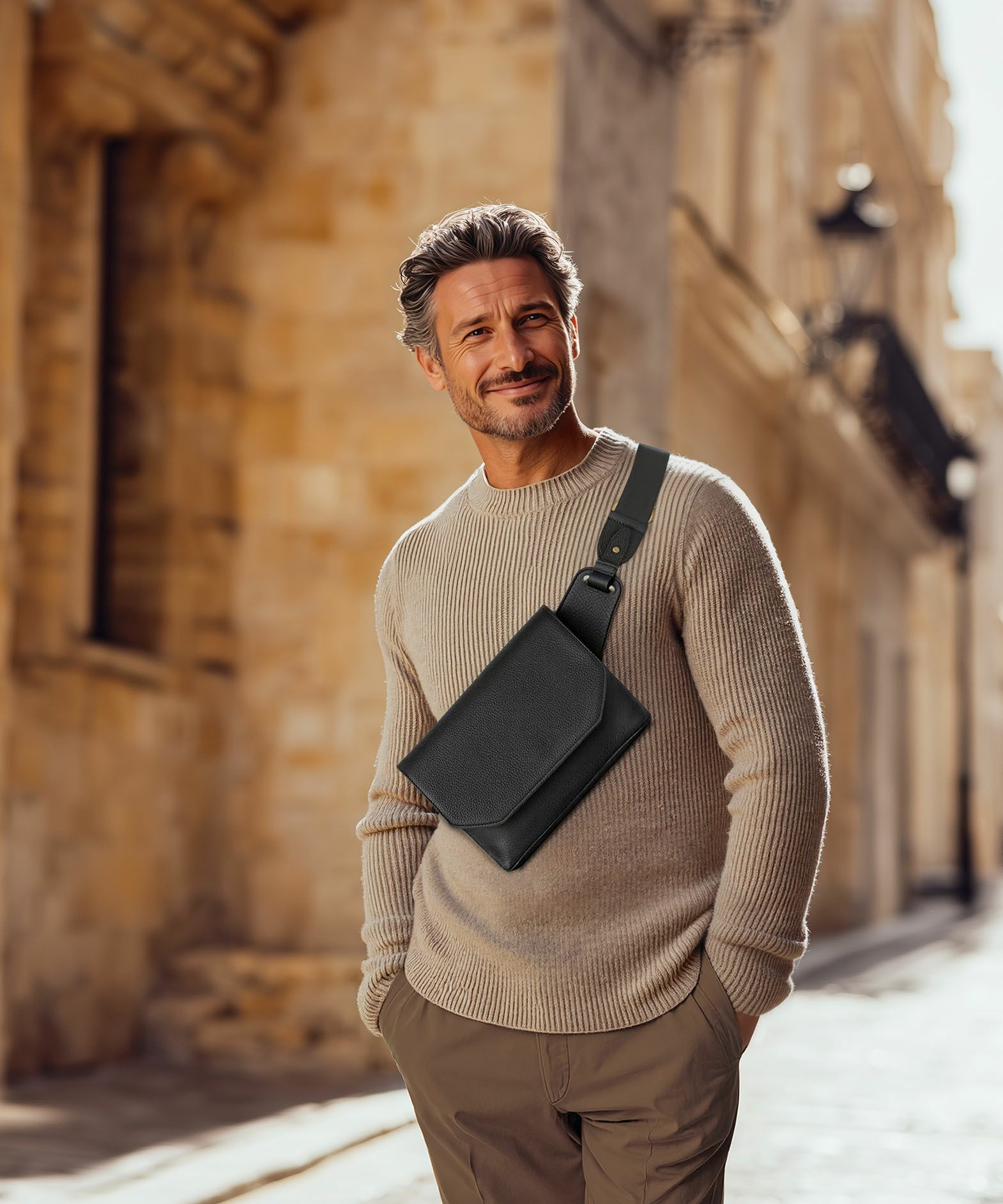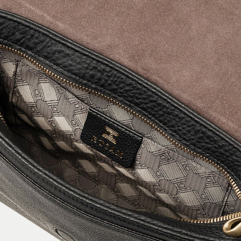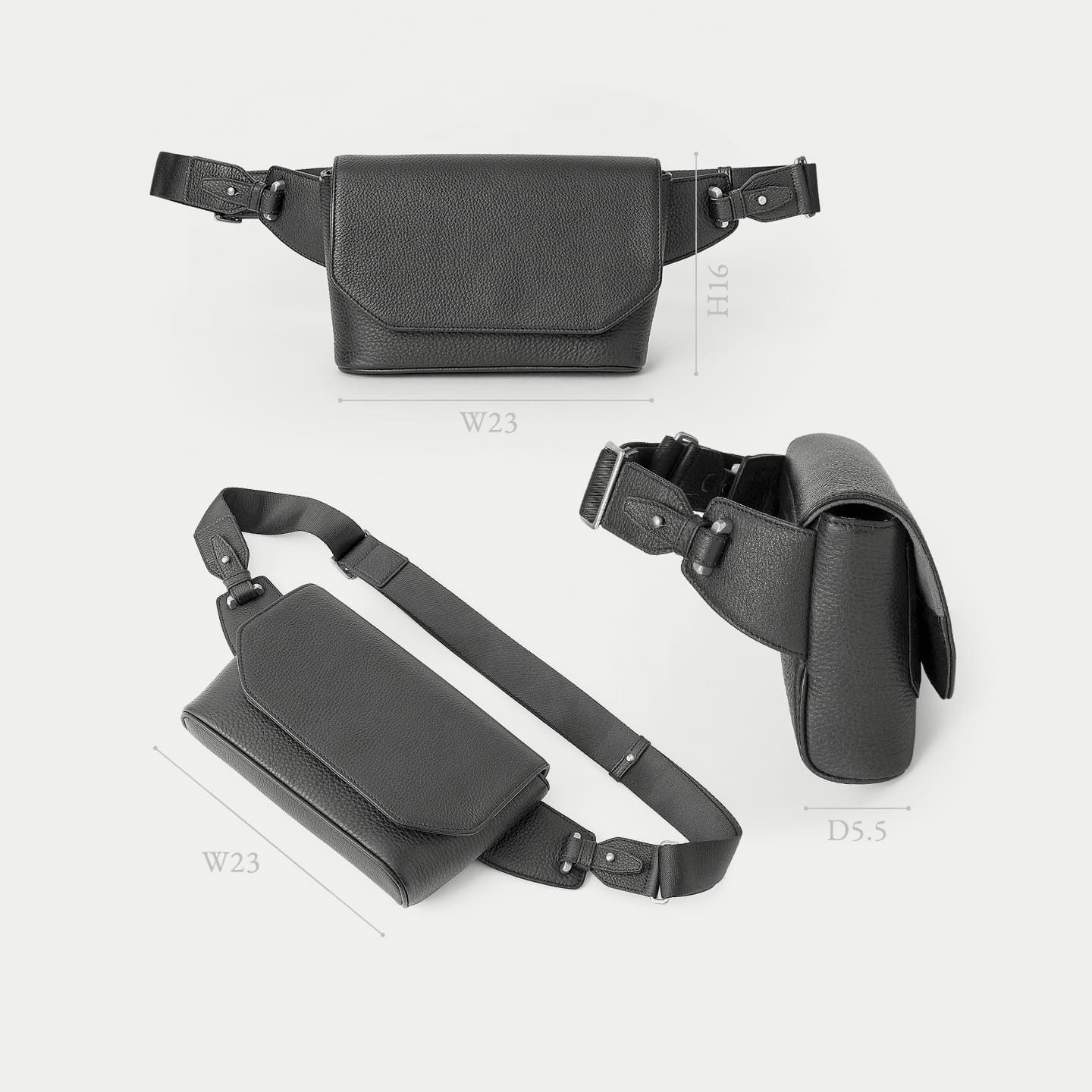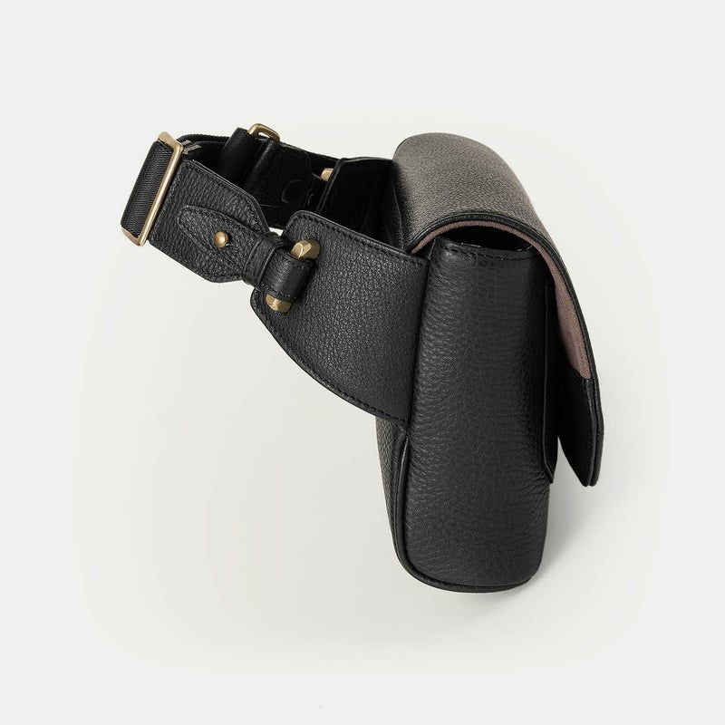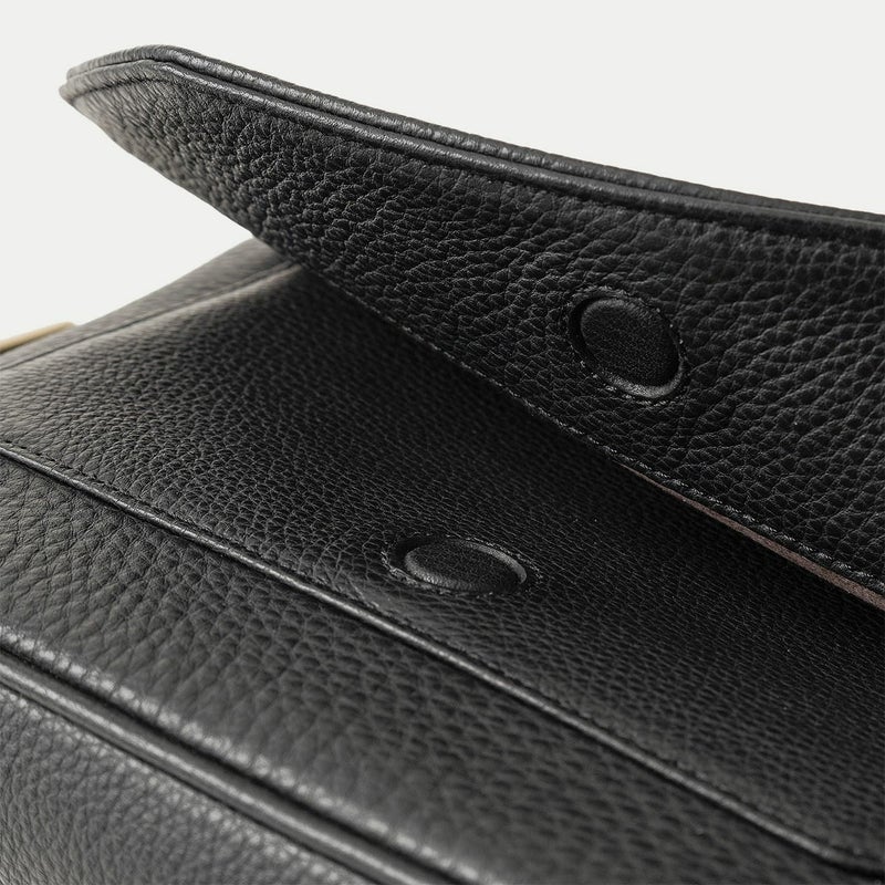 また、洗練されたデザインのアクセントにもなっているフラップは、マグネット式で簡単に開け閉めができるメリットを備えながらも、天ファスナーを設けることで開けた際に荷物の落下を防止する配慮も。さらに、装着時のコーディネートにおいて重要なファクターになるショルダーベルトは、シルクのように上品で落ち着いた中空糸ナイロンテープを採用することで、エレガントなコートやジャケットにも合わせられるなど、軽量な機能性とともに、その見た目にもこだわっています。