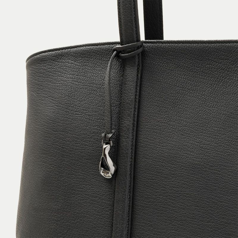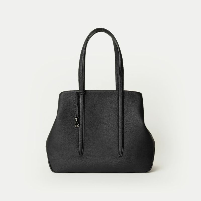 また、バッグの上部を、左右のマチに向かって下がっていくラインにしているのは、マチを内側に折り畳んでも天ファスナーがぶつからないための機能性とともに、エレガントで個性的な見た目の美しさも両立。さらに、底マチは、くびれをセンターに施すことで、肩掛けするときに体にフィットしてスムーズに持ち歩ける実用性と、独特のライン&フォルムがアクセントになっているデザイン性も兼ね備え、フォーマルにもカジュアルにもフレキシブルに活躍してくれます。