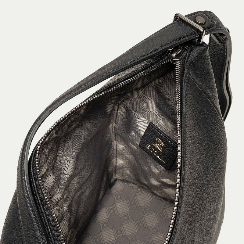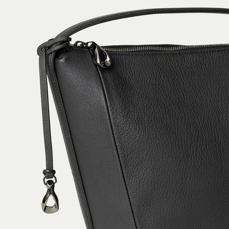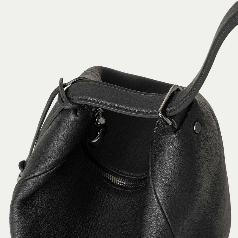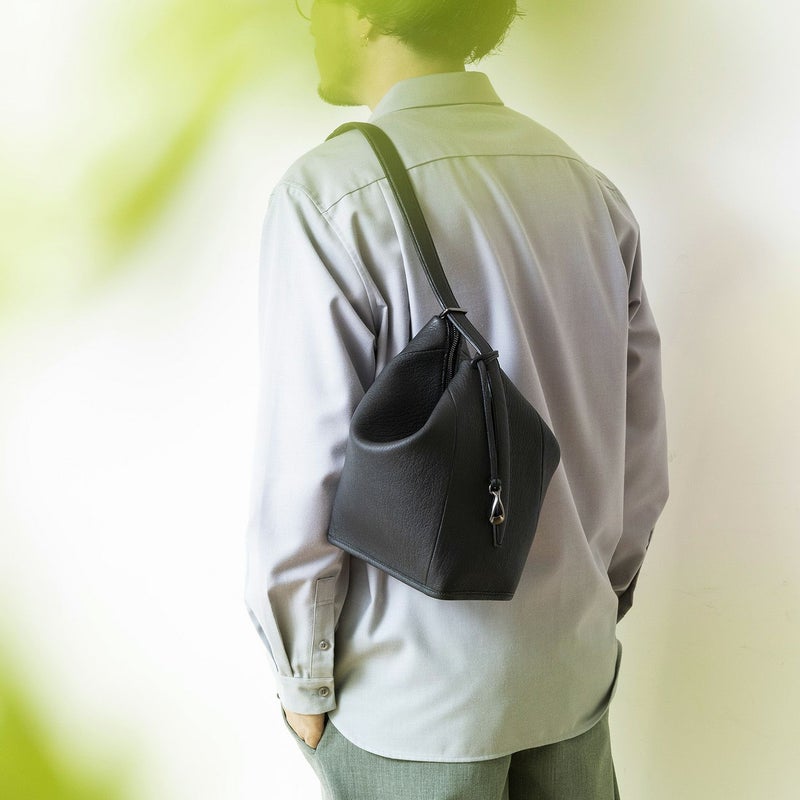 大人カジュアルな魅力を輝かせながら、巾着のようにユニークなフォルムのまま、相棒のように気軽に連れて行ける、新たな価値観を追求したハンド&スリングバッグ。横幅25mmもある肉厚のレザーベルトの長さを調整することで、指や腕に引っ掛けて連れて行くスタイルと、ワンショルダーの肩掛けで連れて行くスタイルの2WAYを楽しむことができます。