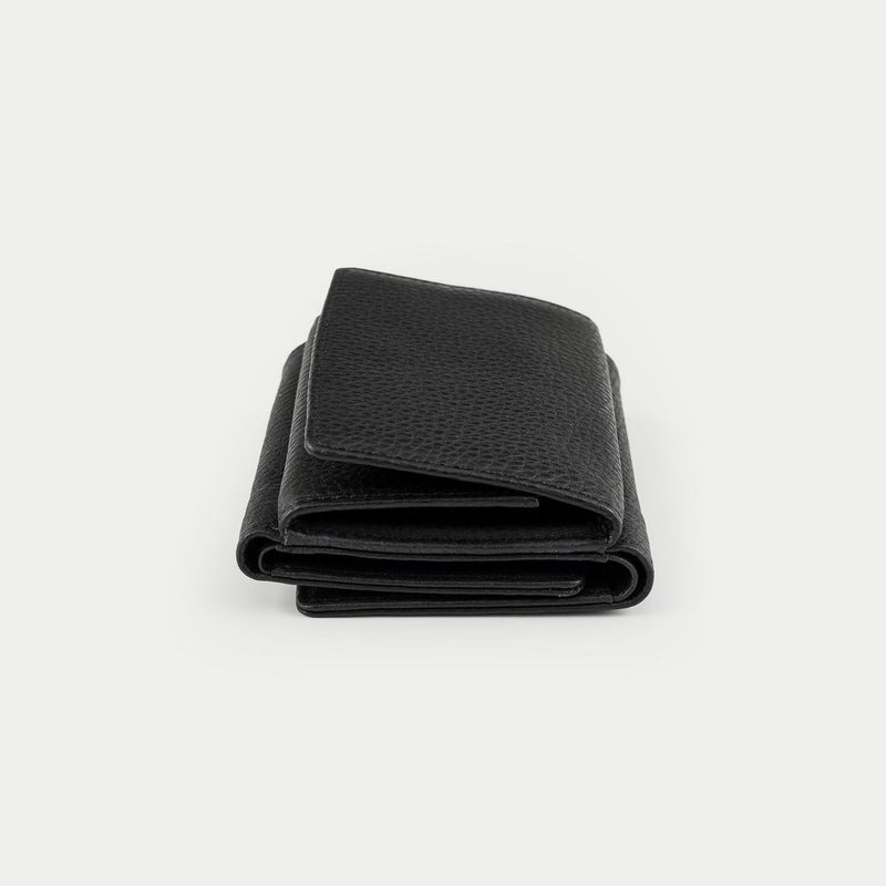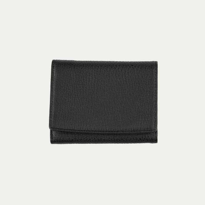キャッシュレス化に伴い財布の小型化・ミニマル化が進むなか、あえて逆行するように少し大きめに設計し、ウォレットとしての収納力と使いやすさを追求した三つ折り財布。表面の三つ折りと背面の小銭入れは、ともにスナップボタン式の開閉により、心地よく余裕を持って使いこなせます。小銭入れをマチが大きく開くボックス型にすることで、開口部が広くなり小銭の出し入れがしやすく、スペースも広いのでコインだけでなく鍵・カードなどの収納も可能。内装のカードポケット6つのカッティングラインは、美しい流線形のカーブを描かせながら、シンメトリーデザインへと昇華させているのも魅力です。また、それらの背面にフリーポケット1つずつ、小銭入れの背面にも1つ設け、計4つのフリーポケットを装備。さらに、札入れも、十分な深さと長さを備えており、ゆったりと紙幣や領収書などを収納しておけます。