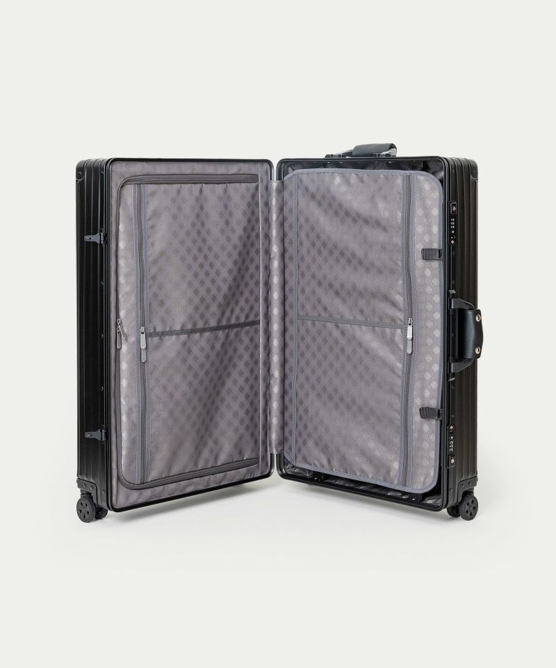 ETiAMらしさを追求しながらも、ブランド初となる新たな商品領域を探求し、新しい世界へと向かう旅人をイメージした、スーツケース(L)。容量は約80Lで、1週間を越える旅行・出張などに適したサイズ感です。