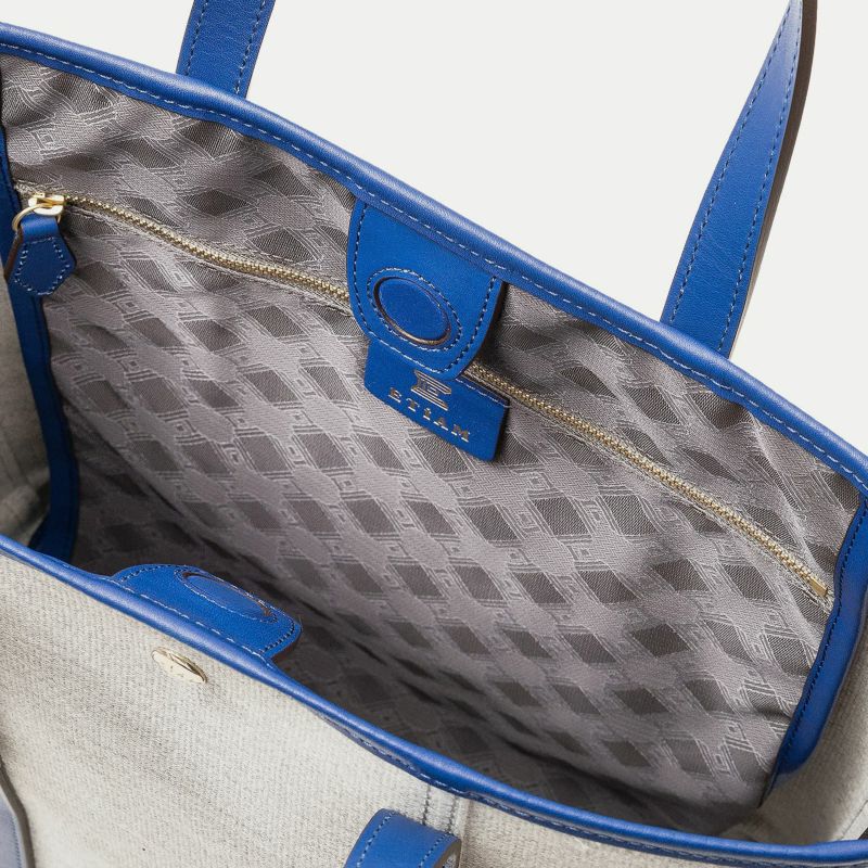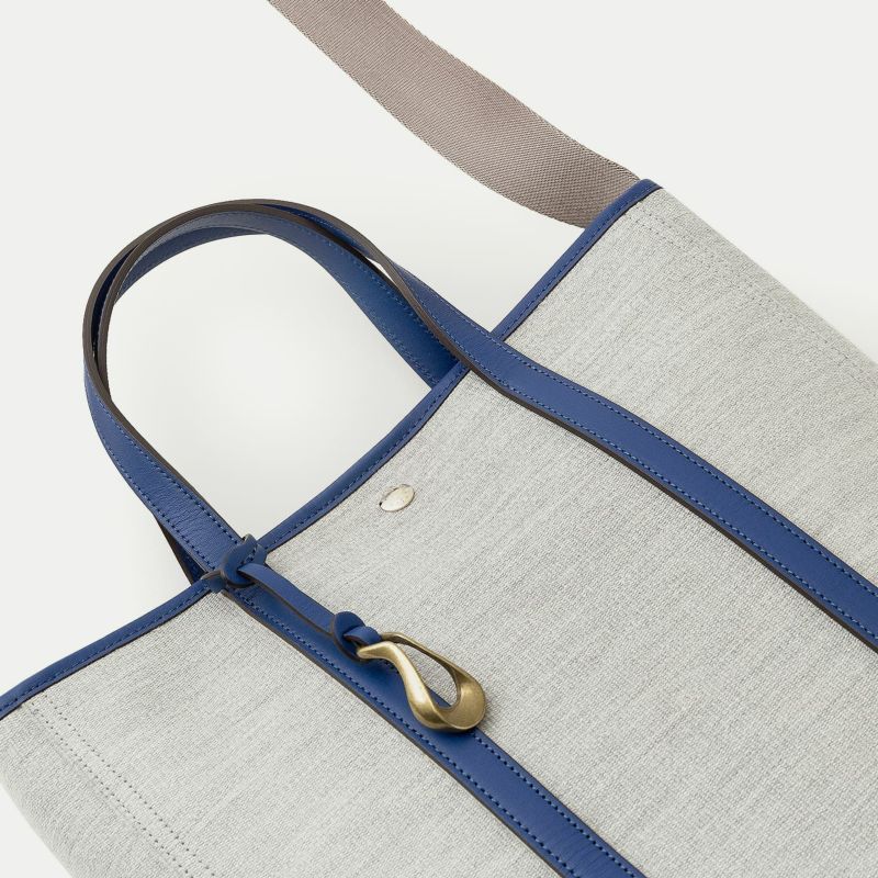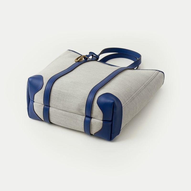 シュッとしたフォルムでA4サイズを縦に収納でき、その日の気分やファッションに合わせて手持ち・肩掛けの2WAYを楽しみながら、自分らしく使いこなせる縦型トートバッグ。ショルダーベルトを、あえて取り外しのできない固定の設計にして、金具などを排したスタイリッシュなデザインに努めるとともに、その付け根を内装の底面に繋げるようにすることで、肩掛けをしていてもバッグ全体に負荷が掛かり、歪みが起きにくい工夫も施しています。