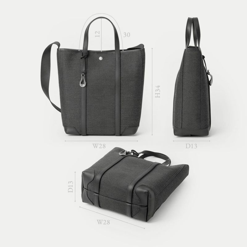 シュッとしたフォルムでA4サイズを縦に収納でき、その日の気分やファッションに合わせて手持ち・肩掛けの2WAYを楽しみながら、自分らしく使いこなせる縦型トートバッグ。ショルダーベルトを、あえて取り外しのできない固定の設計にして、金具などを排したスタイリッシュなデザインに努めるとともに、その付け根を内装の底面に繋げるようにすることで、肩掛けをしていてもバッグ全体に負荷が掛かり、歪みが起きにくい工夫も施しています。
