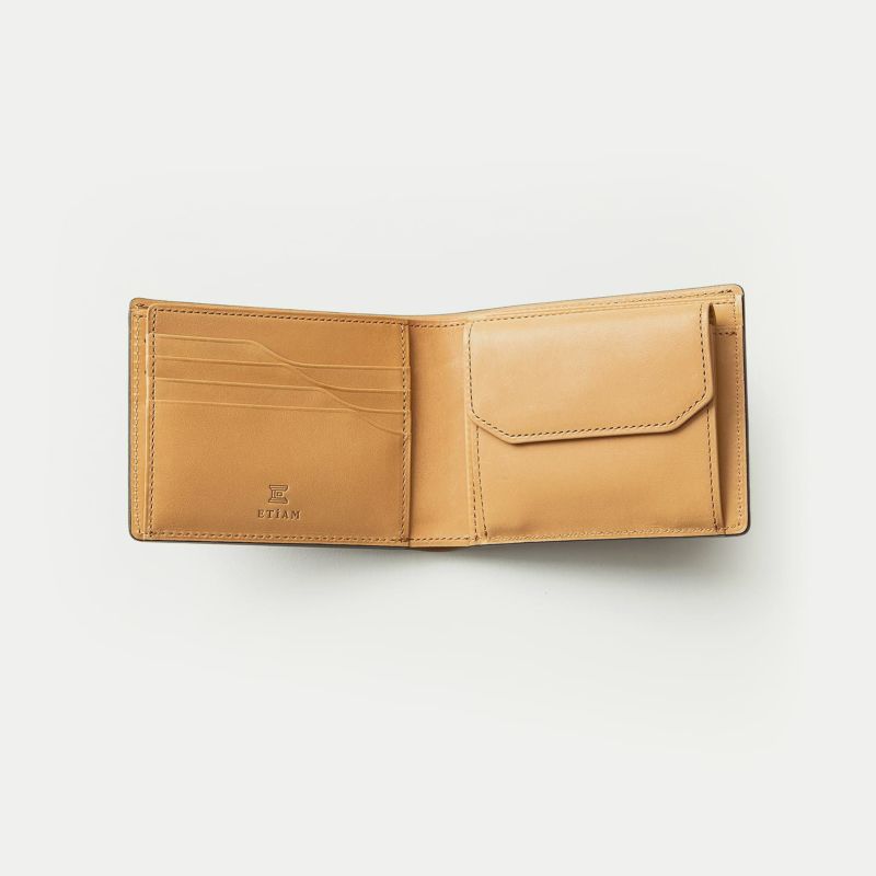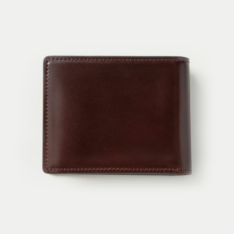 ファンダメンタルな普遍性と、ファッショナブルな独創性を併せ持つバッグブランドによる、時代や流行さえも超えていく新たな魅力を放つ二つ折り財布。“革のダイヤモンド”とも称される外装の「コードバン」は、趣のある重厚な風合いと深みのある上質な色合いへと導かれ、透明感のある美しい光沢を纏うとともに、丁寧なコバの仕上げもその品格を高めています。