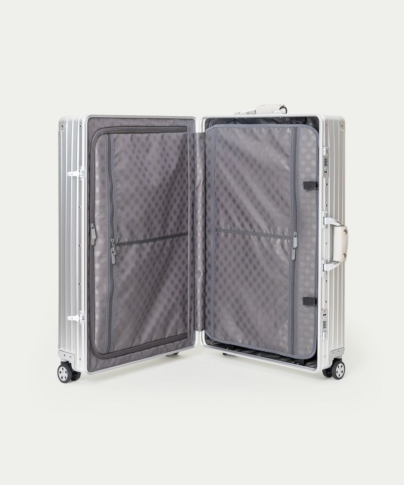 ETiAMらしさを追求しながらも、ブランド初となる新たな商品領域を探求し、新しい世界へと向かう旅人をイメージした、スーツケース(L)。容量は約80Lで、1週間を越える旅行・出張などに適したサイズ感です。