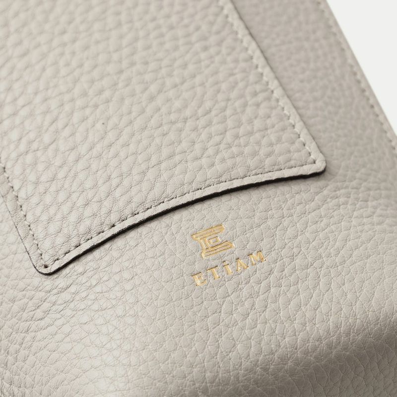 『ETiAM』の「E」マークと、ヘリボーン柄・グログラン柄の3種類を織り交ぜることで、複雑で細かく上品な柄に仕上げた、ブランドオリジナルの「ジャガード」。立体感のある“上品なネクタイ”のような生地を目指し、見る角度によって色の印象や光沢が変化するように、縦糸(ナイロン)は濃いグレー、横糸(ポリエステル)は少しだけ薄いグレーにして、素敵でエレガントな雰囲気を創出。福井県鯖江市で織り、福井市で染めている、日本の職人技が集結した高級感あふれる福井県産の生地に仕上げています。