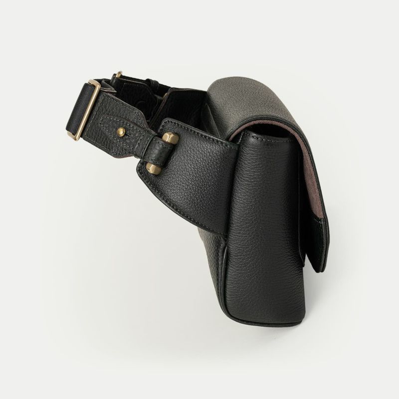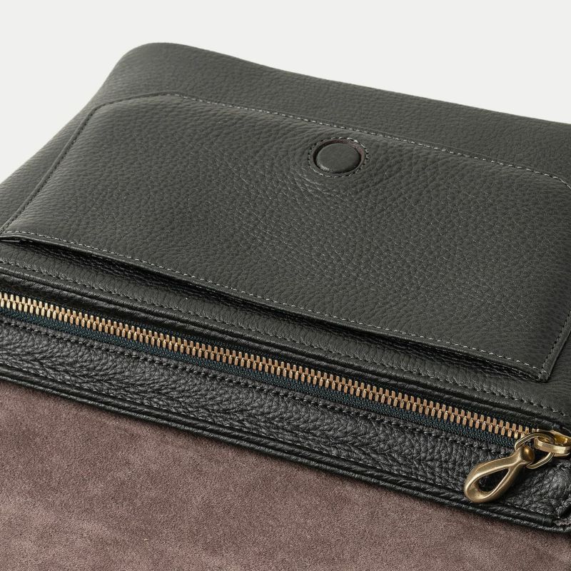 また、洗練されたデザインのアクセントにもなっているフラップは、マグネット式で簡単に開け閉めができるメリットを備えながらも、天ファスナーを設けることで開けた際に荷物の落下を防止する配慮も。さらに、装着時のコーディネートにおいて重要なファクターになるショルダーベルトは、シルクのように上品で落ち着いた中空糸ナイロンテープを採用することで、エレガントなコートやジャケットにも合わせられるなど、軽量な機能性とともに、その見た目にもこだわっています。