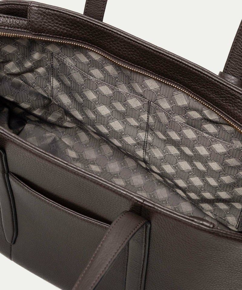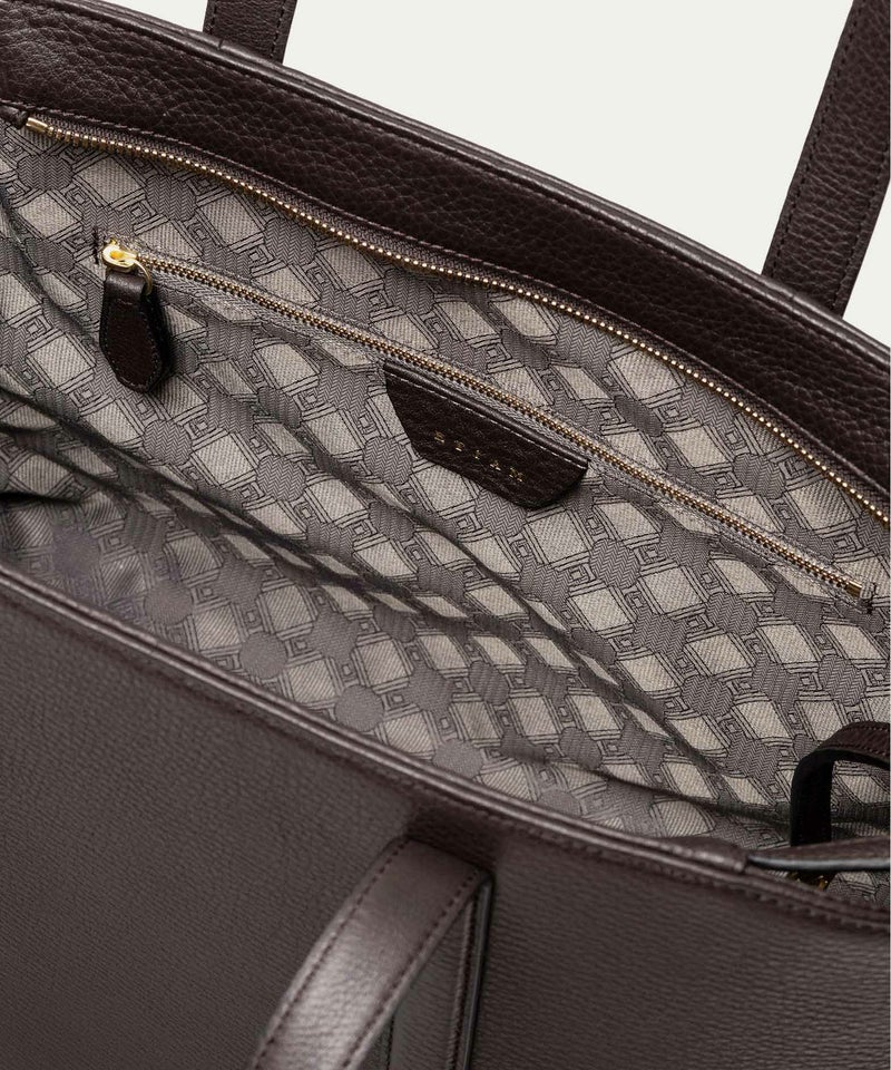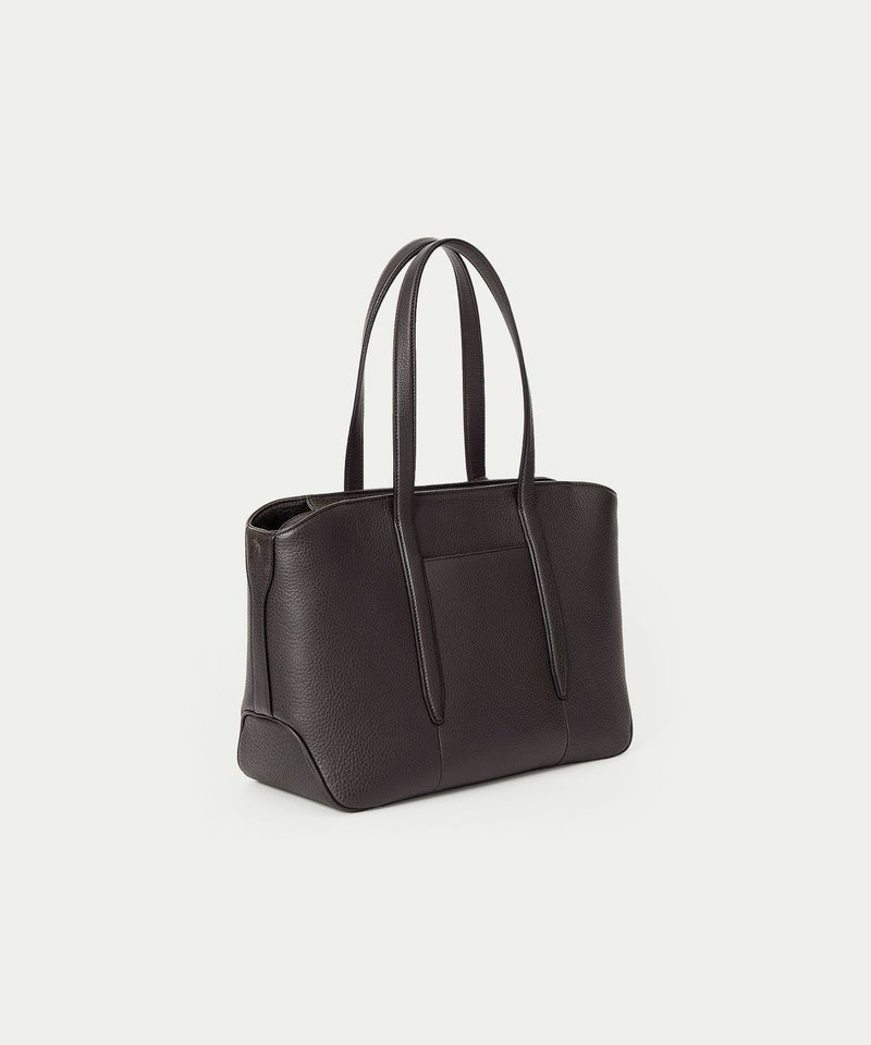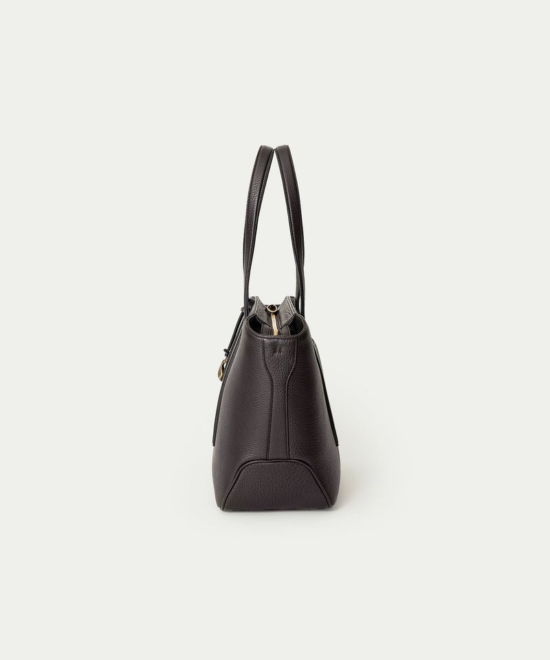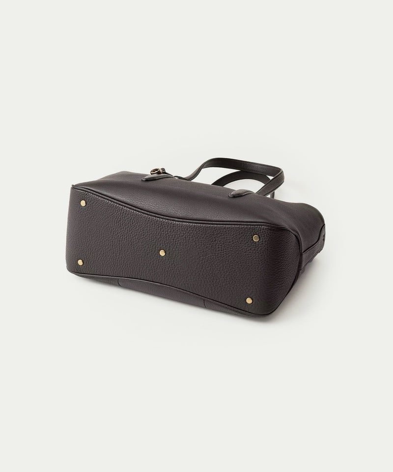 ソフトで馴染みやすい仕上がりで、プライベートにもビジネスにも柔軟に使える、A4サイズを収納可能なファスナー開閉式のトートバッグ。会社への出勤やカフェでのリモートワークには、ノートパソコンなどを収納・携帯するために大容量が必要ですが、休日などで収納・携帯する物が少ないときには、マチを内側に折り畳んでコンパクトにすることができ、2通りのシルエットを用途に合わせて自由に楽しめるのも魅力です。