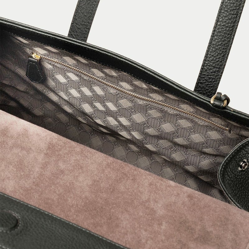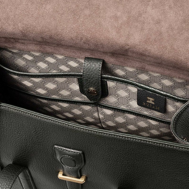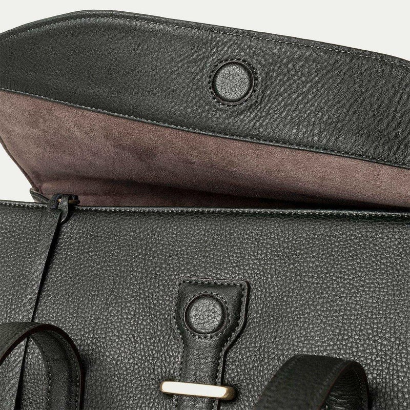 旅行・出張・ゴルフなどで少し荷物が多いときにも、上品にコーディネートして持ち歩ける、13インチのノートPCやA4の書類を収納できて手持ちハンドル仕様のフラップトートバッグ。フロントとマチが一体になった一枚仕立てにすることで、ふっくらとした美しいシルエットを叶えるとともに、サイドに設けられたスナップボタンでマチ幅を調整できたり、フラップをイミテーションの差し込み金具にしてマグネットで簡単に開け閉めできたりするなど、エレガントなデザイン性とカジュアルな機能性を併せ持っています。