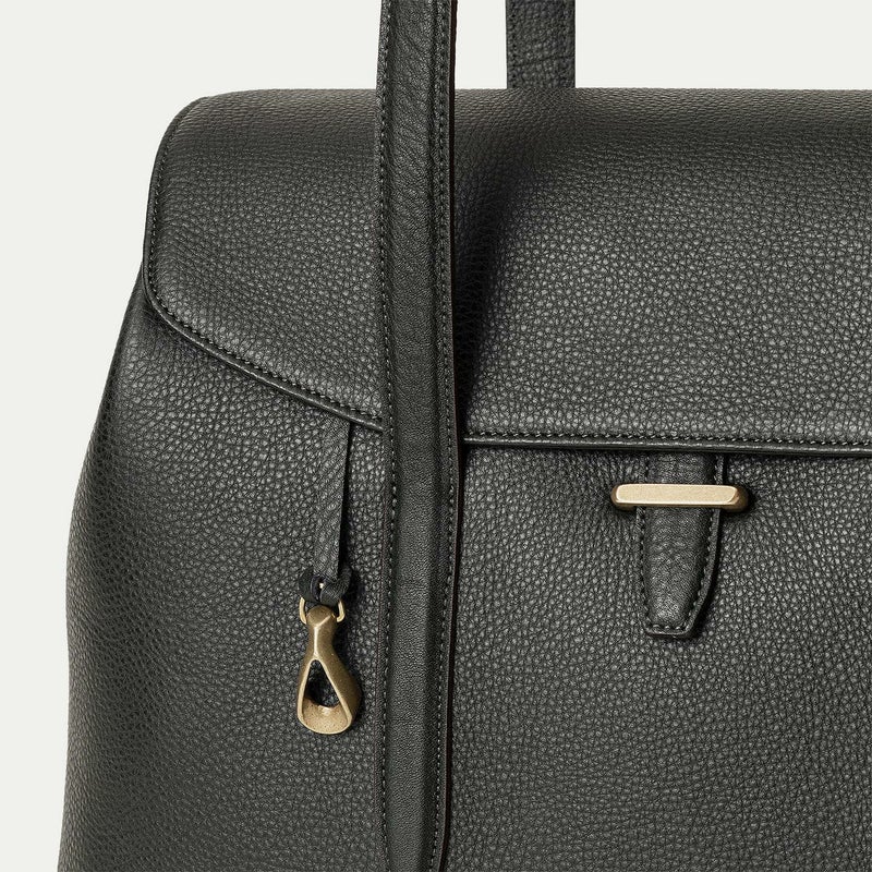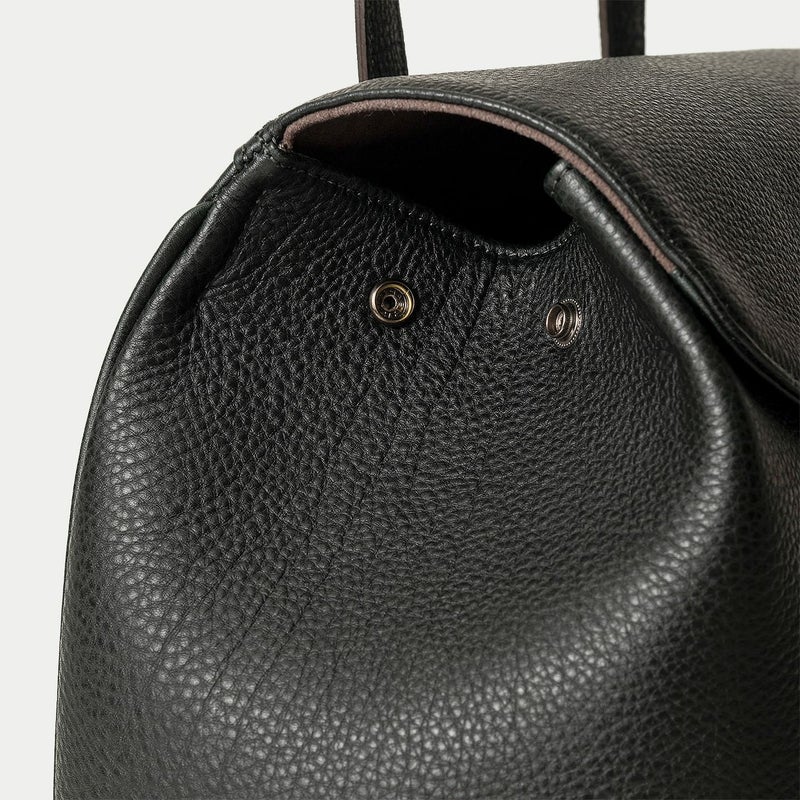 また、ボディだけでなくフラップ・ハンドル・底・ベルトに採用している「シュリンクレザー」が、魅力的なシボ感で落ち着きのある印象を与えながら、置いて自立させる際の安定感・バランス感にも貢献。さらに、クラシックさとクールさを併せ持つ、スタイリッシュな佇まいも魅力になっています。