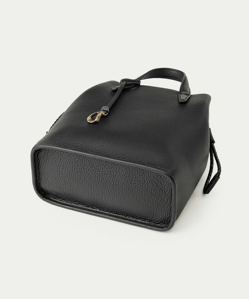 シボ感が美しい「シュリンクレザー」を纏ったフォルムの変化に、柔軟な曲がり方で自然に寄り添う、ドローストリングショルダーバッグS。肉厚で丈夫なハンドルによる手持ちと、取り外し可能なショルダーベルトによる肩掛けの2WAYで、気分やスタイルに合わせて持ち歩くことができます。前面とマチを一枚革で仕立てたボディは、ハギ(繋ぎ目)のない滑らかなシルエットが魅力。また、ハンドルとの接続を、縫製ではなくリベット式にすることで、よりスッキリとした軽快な印象へと引き立てています。