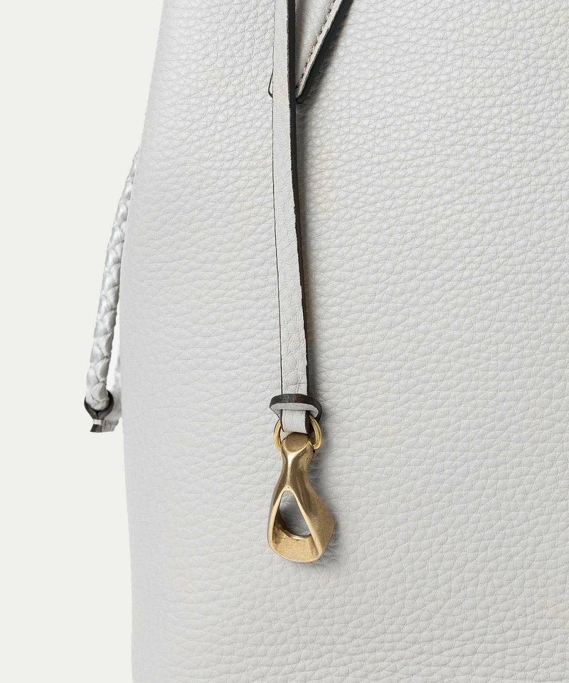 シボ感が美しい「シュリンクレザー」を纏ったフォルムの変化に、柔軟な曲がり方で自然に寄り添う、ドローストリングショルダーバッグS。肉厚で丈夫なハンドルによる手持ちと、取り外し可能なショルダーベルトによる肩掛けの2WAYで、気分やスタイルに合わせて持ち歩くことができます。前面とマチを一枚革で仕立てたボディは、ハギ(繋ぎ目)のない滑らかなシルエットが魅力。また、ハンドルとの接続を、縫製ではなくリベット式にすることで、よりスッキリとした軽快な印象へと引き立てています。