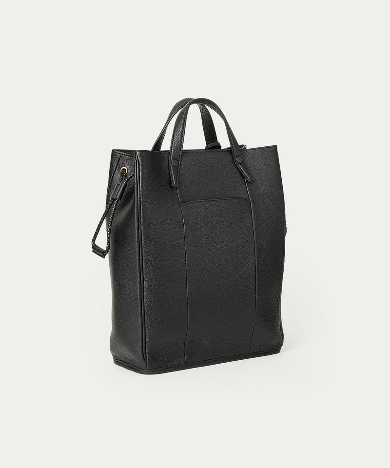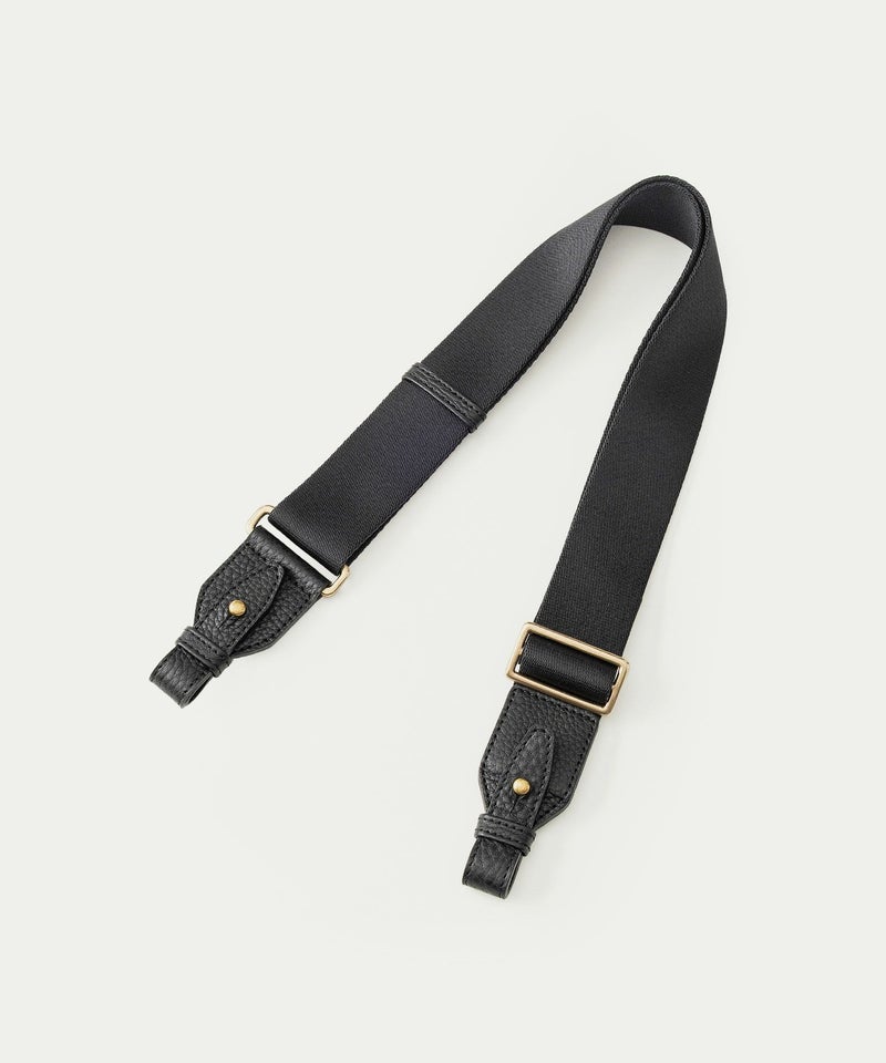巾着型のドローストリング仕様で、紐の動きが美しく絞られたマチに遊び心を添えながら、前面・背面は内装に通すことで、洗練されたスタイリュシュな佇まいへ。レザーを編み込んだような上質なポリエステル製で、強度にも優れており、先端のレザー部にショルダーベルトを接続できる設計になっています。しなやかで柔軟な接続部が、軽やかでアクティブな雰囲気を演出。シルクのような光沢感が美しいナイロンテープは、カジュアルになりがちな斜め掛けも上品に引き立ててくれます。