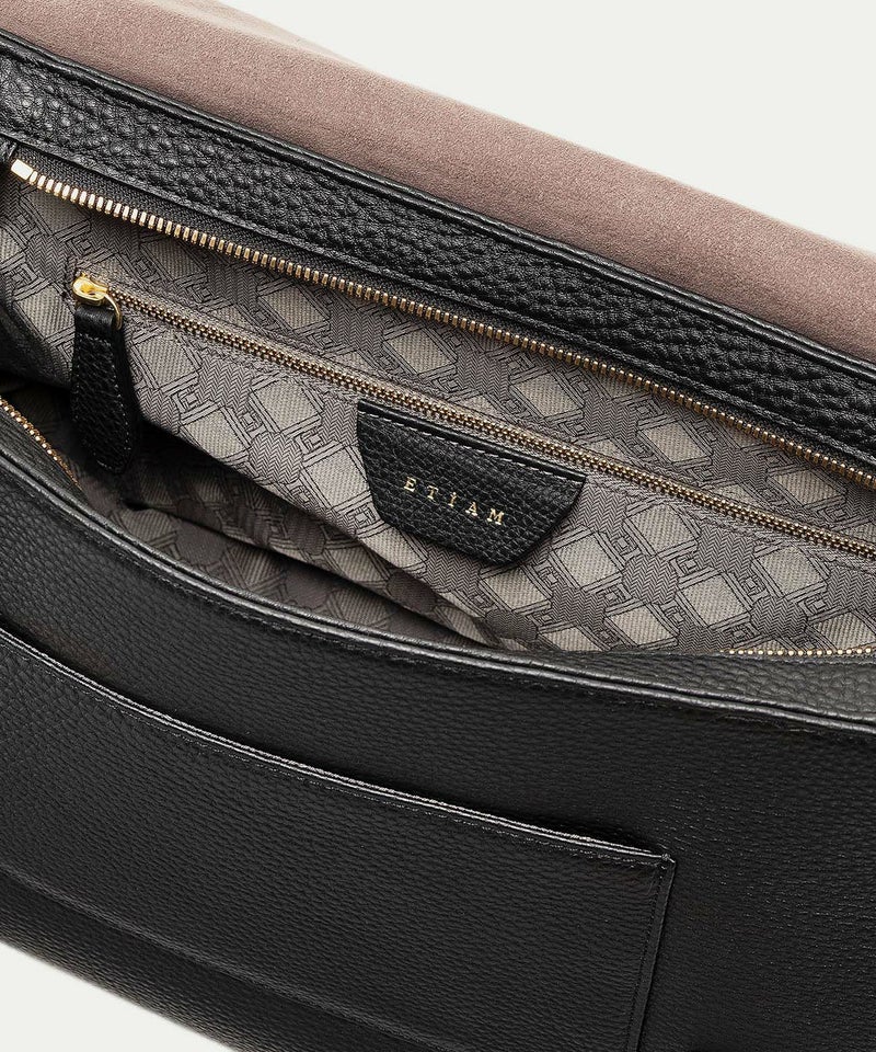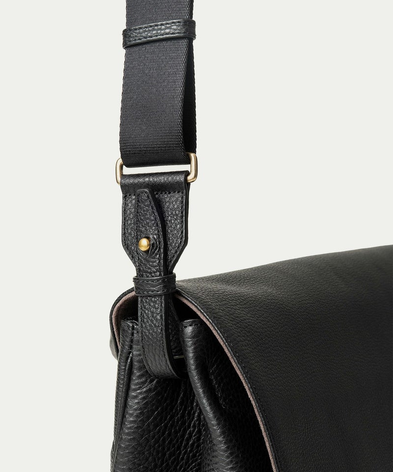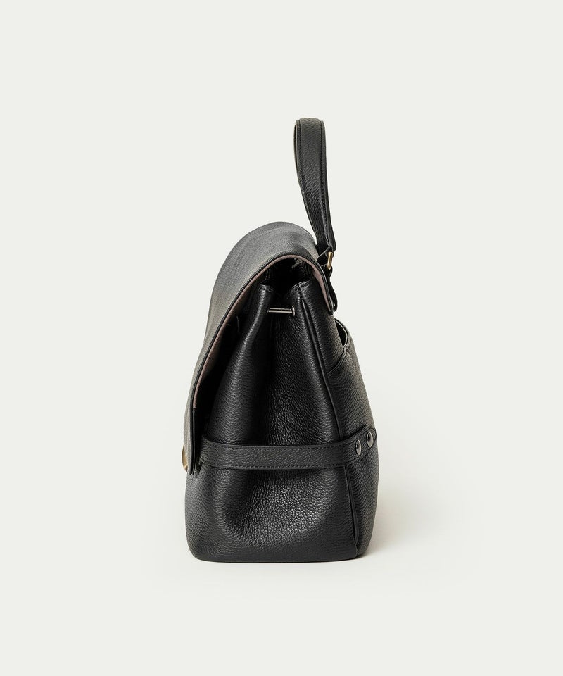 スマートな収納力とスタイリッシュな上質感で、進化し続けるビジネススタイルを前向きにサポートする、フラップショルダーバッグ。多様化するスタイルに合わせやすい機能性と柔軟性を併せ持ち、オン・オフ問わずフィットする使い心地も魅力です。肉厚で丈夫なハンドルの立ち上げを高く設け、付け根を左右に広げて設置することで、ハンドルの手持ち・肩掛けとともに、取り外し可能なショルダーベルトとの3WAYを優雅に使いこなすことも可能。クラシックなデザインのフラップは、マグネット開閉式で使いやすく、柔らかく仕上げられた「シュリンクレザー」が、軽やかな印象をもたらします。