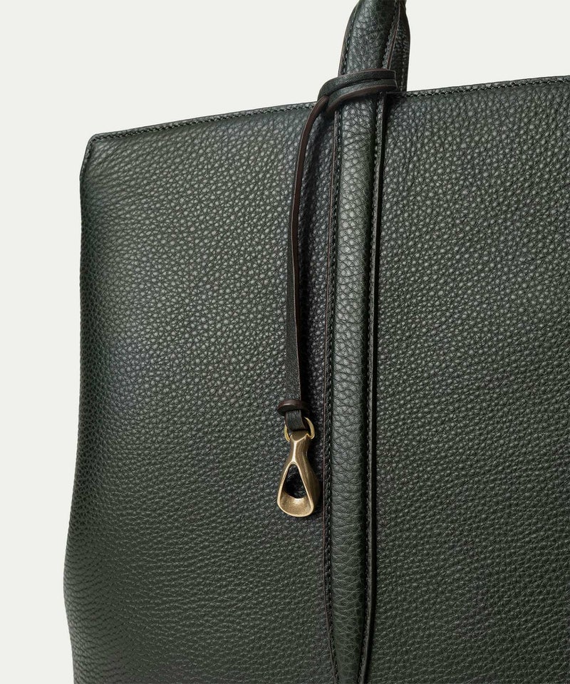 肩掛け・斜め掛けなど多彩なスタイルに対応できるショルダーベルトも付属し、マチの上部に設けた接続金具には、ブラックニッケルメッキを施したオリジナル真鍮金具を採用。ショルダーベルトを外しているときでも目立つことなく、洗練されたスタイリッシュさを添えてくれます。