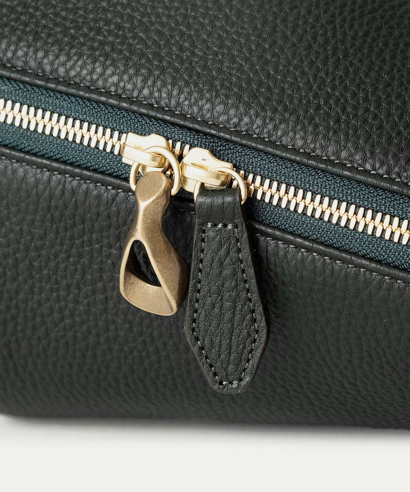 背面の開閉には、YKK最高峰のエクセラWファスナーを使用し、スマートフォン・ミニ財布・ペットボトルなどをしっかりと収納。また、内装にはファスナーポケットを装備し、鍵・パスケース・小物などを整理して持ち運べます。さらに、下部を内側に折り畳むことでコンパクトにでき、かさばらずにバッグやスーツケースへの収納も。普段使いはもちろん、旅先や出張先などでも性別を問わずスタイリッシュに使いこなせます。