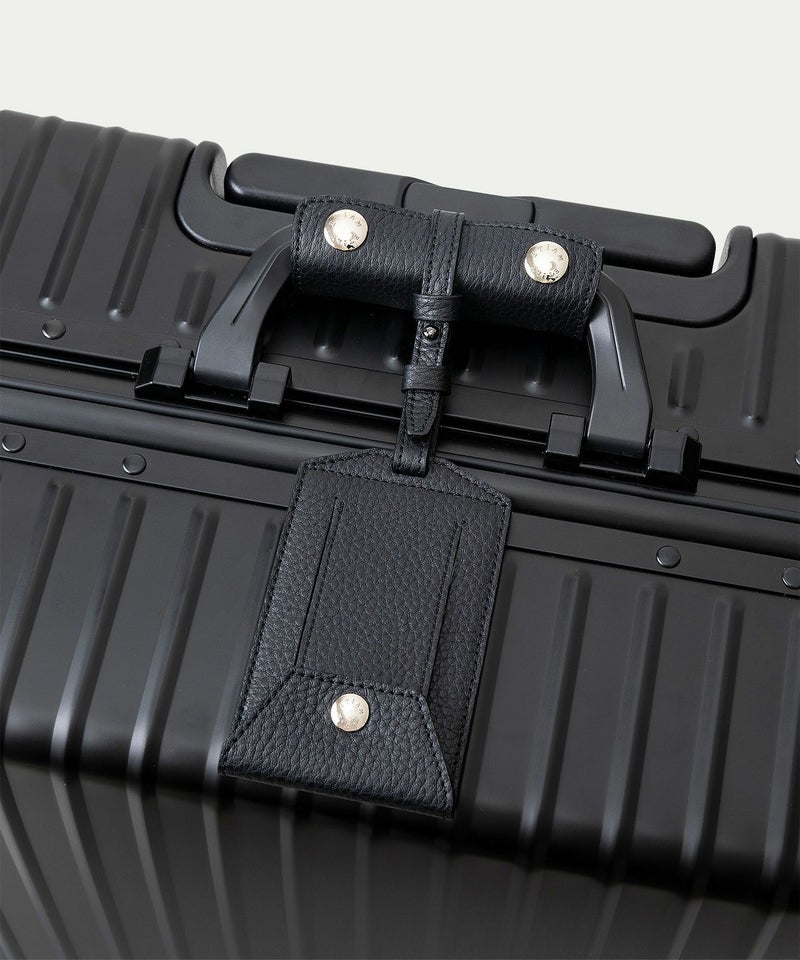 本体の素材には、高品質なアルミニウム合金〈5052-H32〉を採用。建築外装材・ノートPCなどにも使用される信頼性の高さと、耐食性・成形性・軽量性に優れているのが特長です。アルミニウム加工に特化した工場で、フレーム・ボディそれぞれを専用機械で精密に成形。平面1枚のアルミ板から、プレス・切り出し・成形する工程を経て、一体感のある美しいフォルムへと仕上げています。そして、洗練された輝きを放つ柔らかな曲線と上品な光沢による、クラシックな佇まいと存在感が、旅のスタイルを格上げするように演出。使い込むほどに刻まれる小さな凹みやキズは、ETiAMのバッグにも使われている「シュリンクレザー」のハンドルカバーやネームタグとともにに、味わいを増しながら思い出深く育っていくのも魅力です。