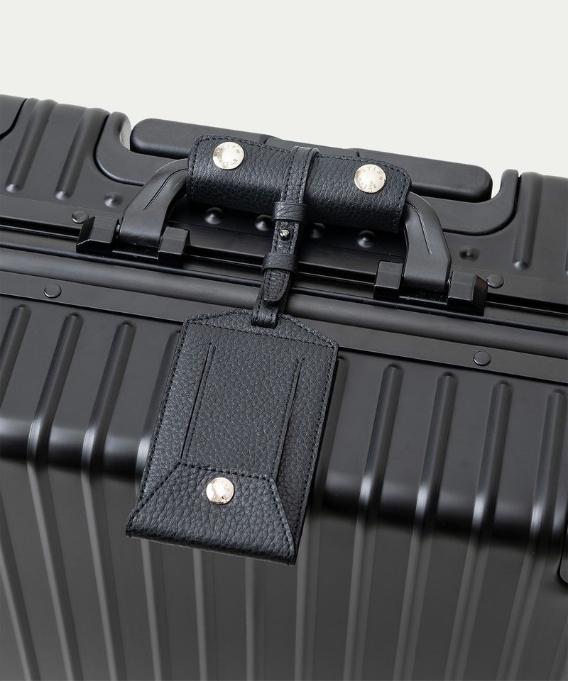 本体の素材には、高品質なアルミニウム合金〈5052-H32〉を採用。建築外装材・ノートPCなどにも使用される信頼性の高さと、耐食性・成形性・軽量性に優れているのが特長です。アルミニウム加工に特化した工場で、フレーム・ボディそれぞれを専用機械で精密に成形。平面1枚のアルミ板から、プレス・切り出し・成形する工程を経て、一体感のある美しいフォルムへと仕上げています。そして、洗練された輝きを放つ柔らかな曲線と上品な光沢による、クラシックな佇まいと存在感が、旅のスタイルを格上げするように演出。使い込むほどに刻まれる小さな凹みやキズは、ETiAMのバッグにも使われている「シュリンクレザー」のハンドルカバーやネームタグとともにに、味わいを増しながら思い出深く育っていくのも魅力です。