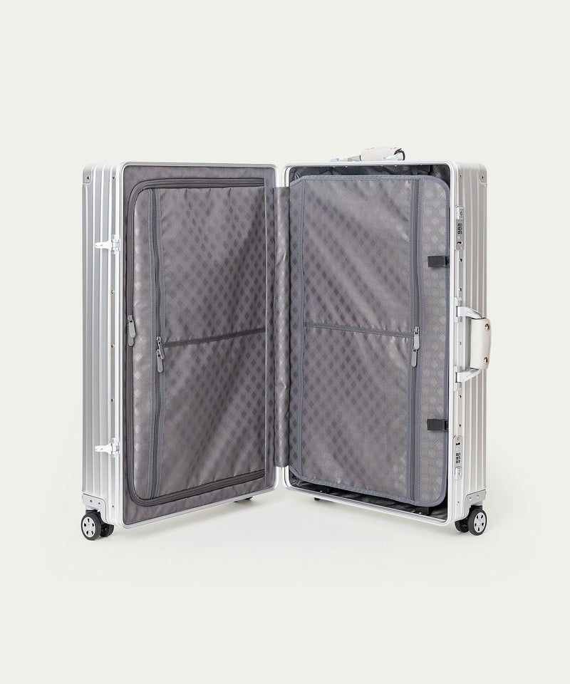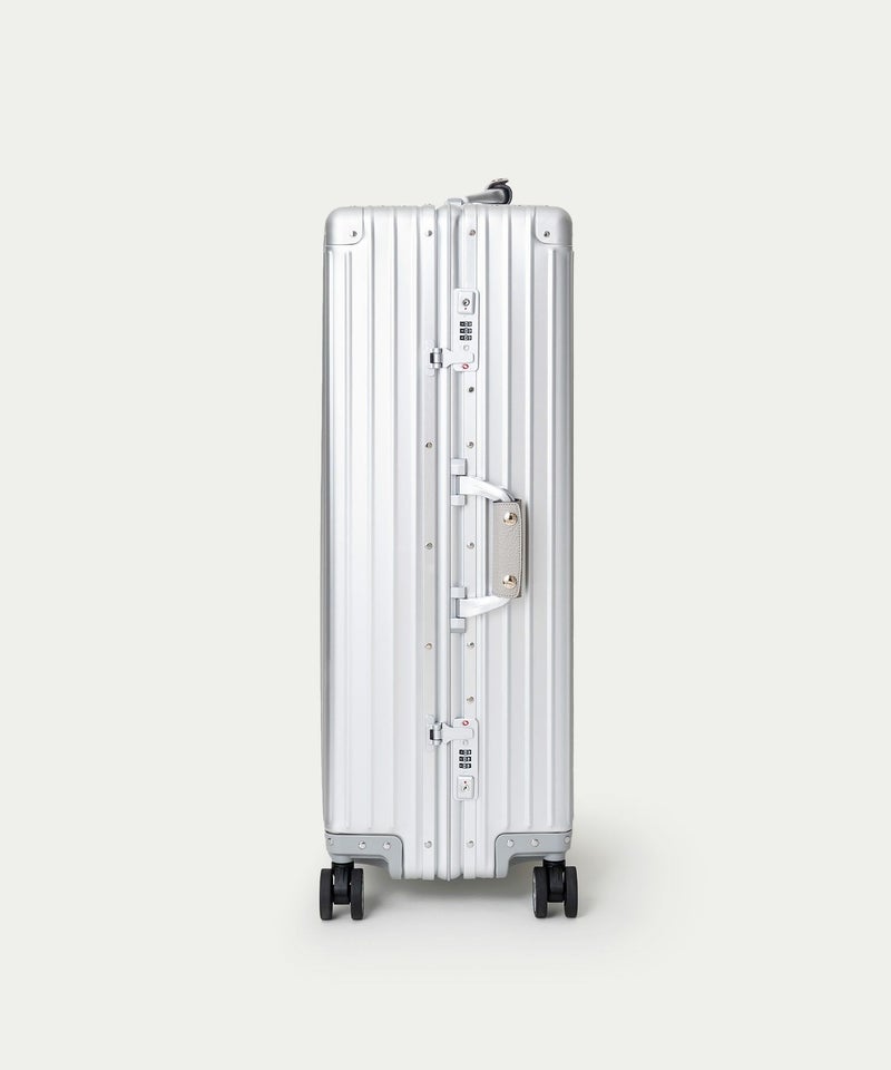 ETiAMらしさを追求しながらも、ブランド初となる新たな商品領域を探求し、新しい世界へと向かう旅人をイメージした、スーツケース(L)。容量は約80Lで、1週間を越える旅行・出張などに適したサイズ感です。