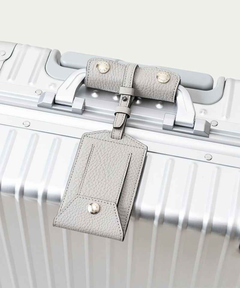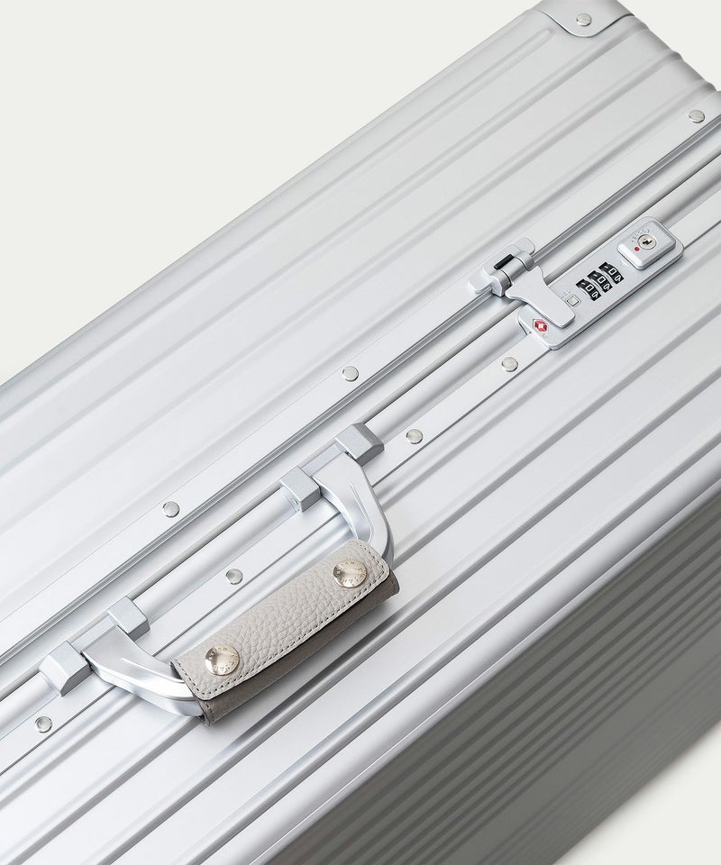 本体の素材には、高品質なアルミニウム合金〈5052-H32〉を採用。建築外装材・ノートPCなどにも使用される信頼性の高さと、耐食性・成形性・軽量性に優れているのが特長です。アルミニウム加工に特化した工場で、フレーム・ボディそれぞれを専用機械で精密に成形。平面1枚のアルミ板から、プレス・切り出し・成形する工程を経て、一体感のある美しいフォルムへと仕上げています。そして、洗練された輝きを放つ柔らかな曲線と上品な光沢による、クラシックな佇まいと存在感が、旅のスタイルを格上げするように演出。使い込むほどに刻まれる小さな凹みやキズは、ETiAMのバッグにも使われている「シュリンクレザー」のハンドルカバーやネームタグとともにに、味わいを増しながら思い出深く育っていくのも魅力です。