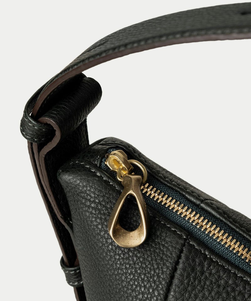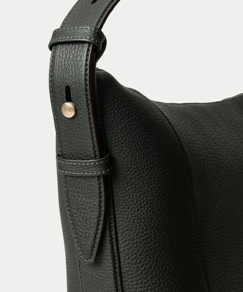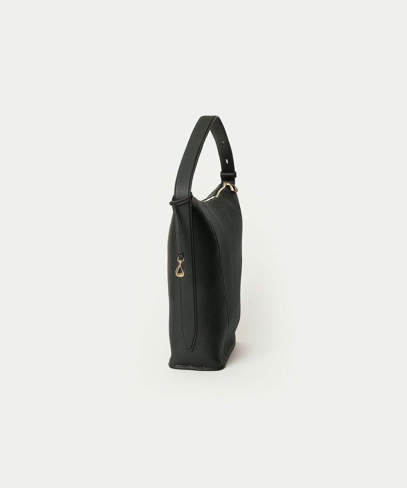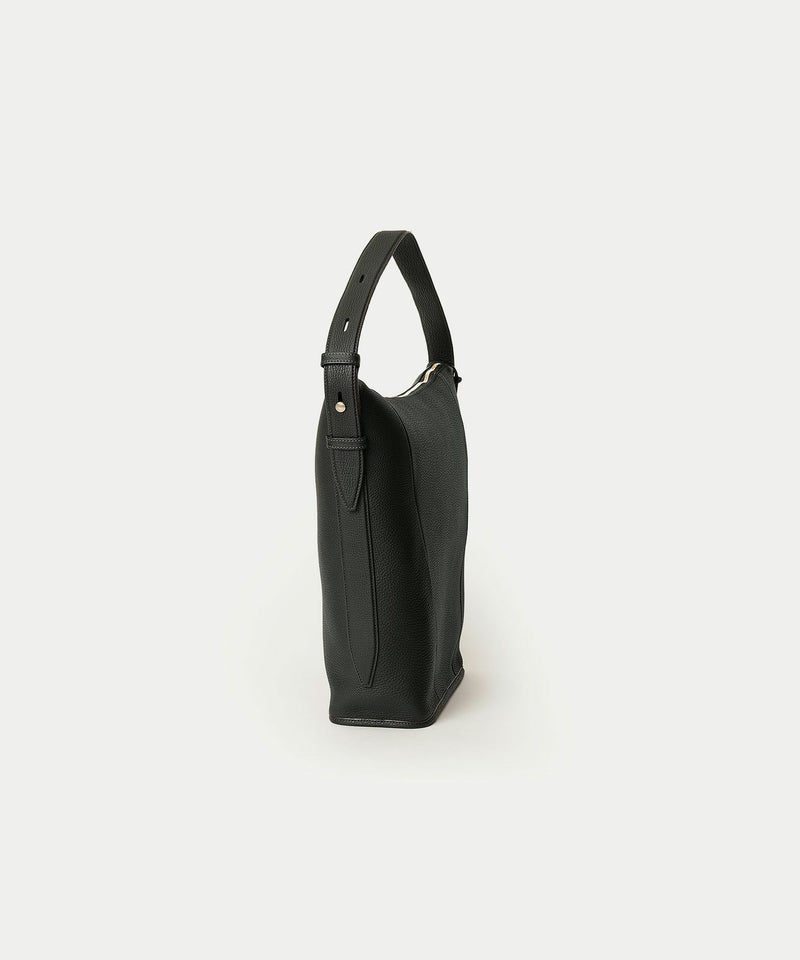 シンプルなデザインを追求することに焦点を合わせ、ハンドルを1本にした軽快さと、体に寄り添う快適さを併せ持たせた、美しいシルエットの縦型ホーボーバッグ。シボ感が魅力的な「シュリンクレザー」には、もちもちとした張りと柔らかさを兼ね備えた芯材使いをすることで、荷物の量に合わせてボディ上部がたわみ、柔軟にフォルムが対応するのも魅力です。